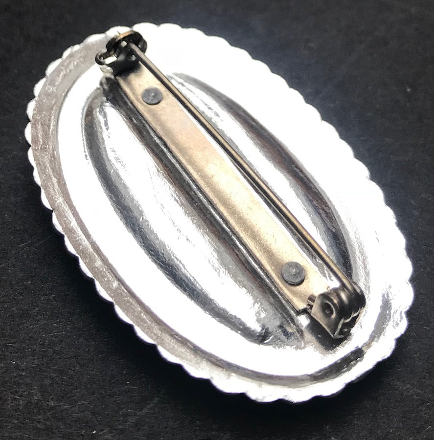 The brooch is 4.5cm wide and 3cm tall, and has a secure clip on the back.