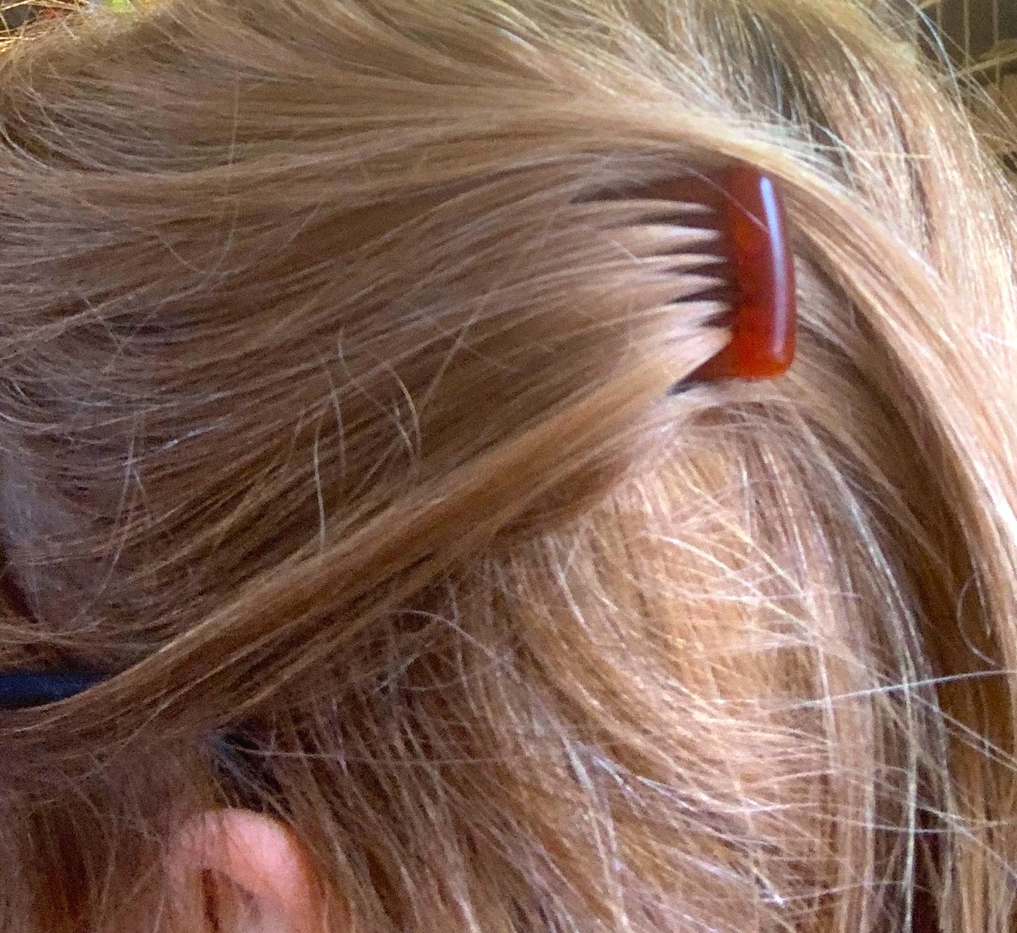 Wavy teeth and slightly flexible plastic allow these little 1" / 2.3cm wide hair combs very effectively and subtly