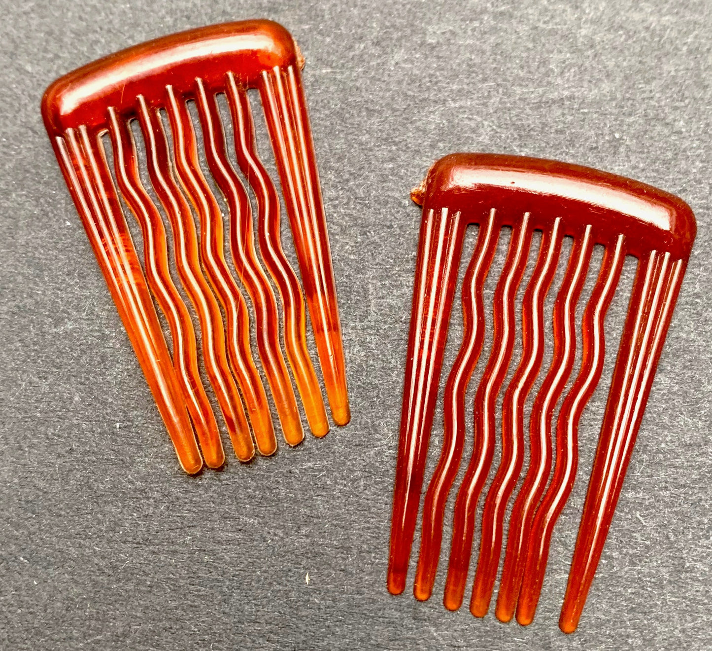 or as decorative hair combs - the vintage tortoiseshell plastic is a lovely semi opaque colour that glows in the light.