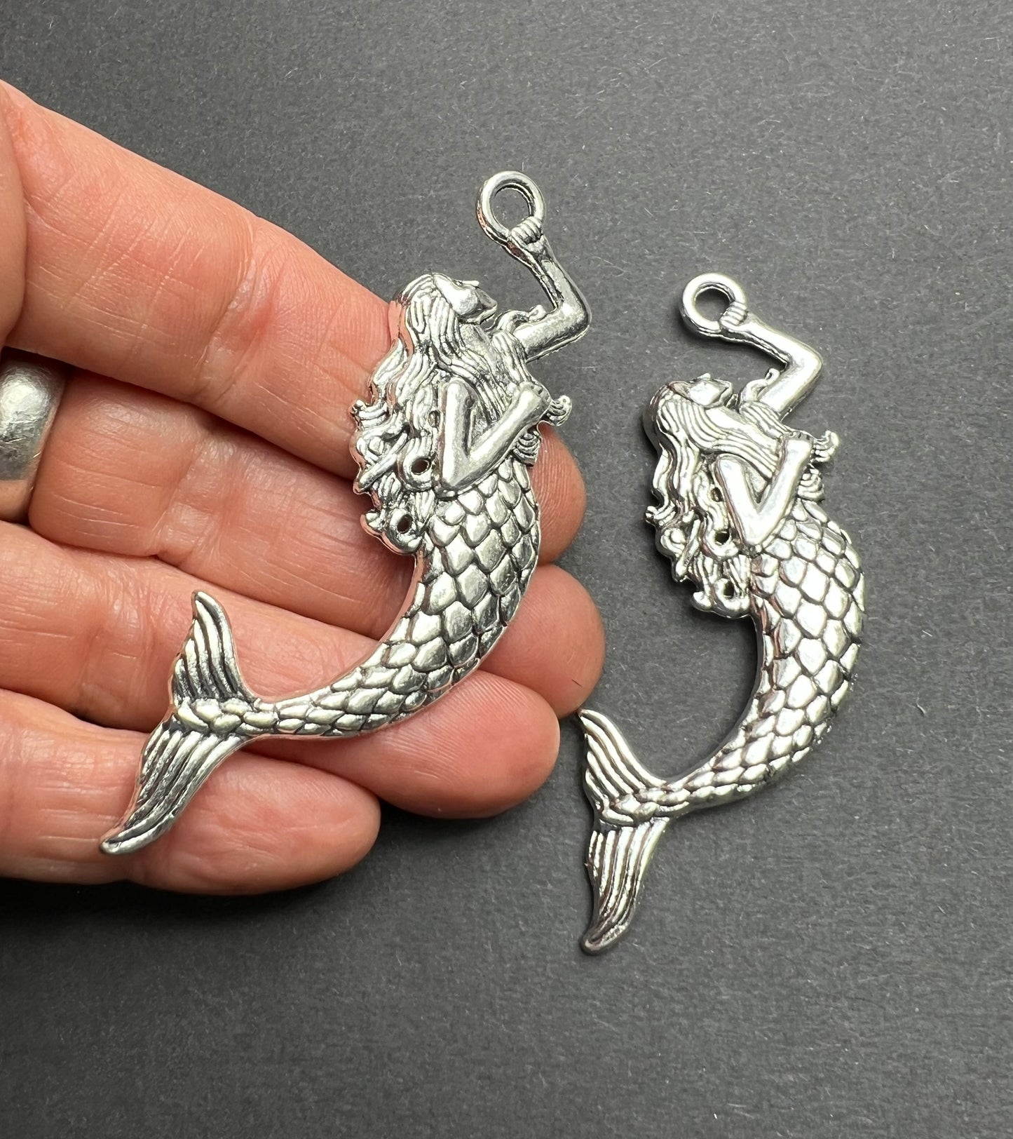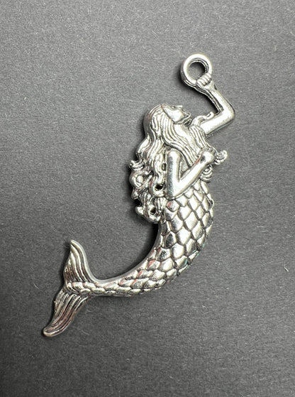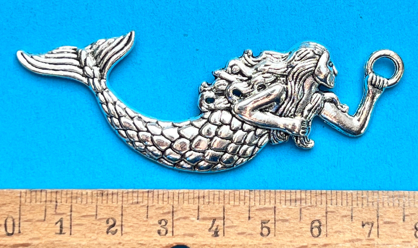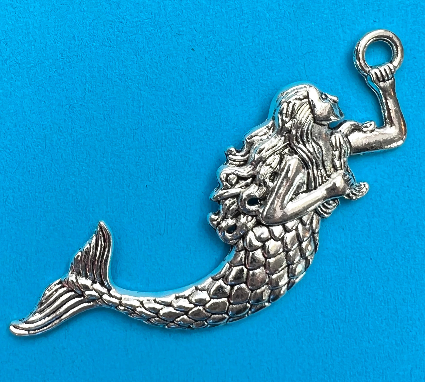 Almost 8cm tall, made of a silver tone metal this Mermaid pendant is very striking indeed.