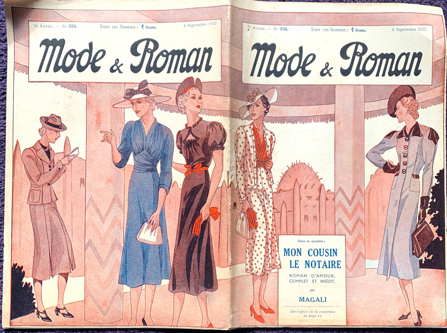 Late Summer Fashion on Front Cover of September 1937 French Magazine Mode & Roman