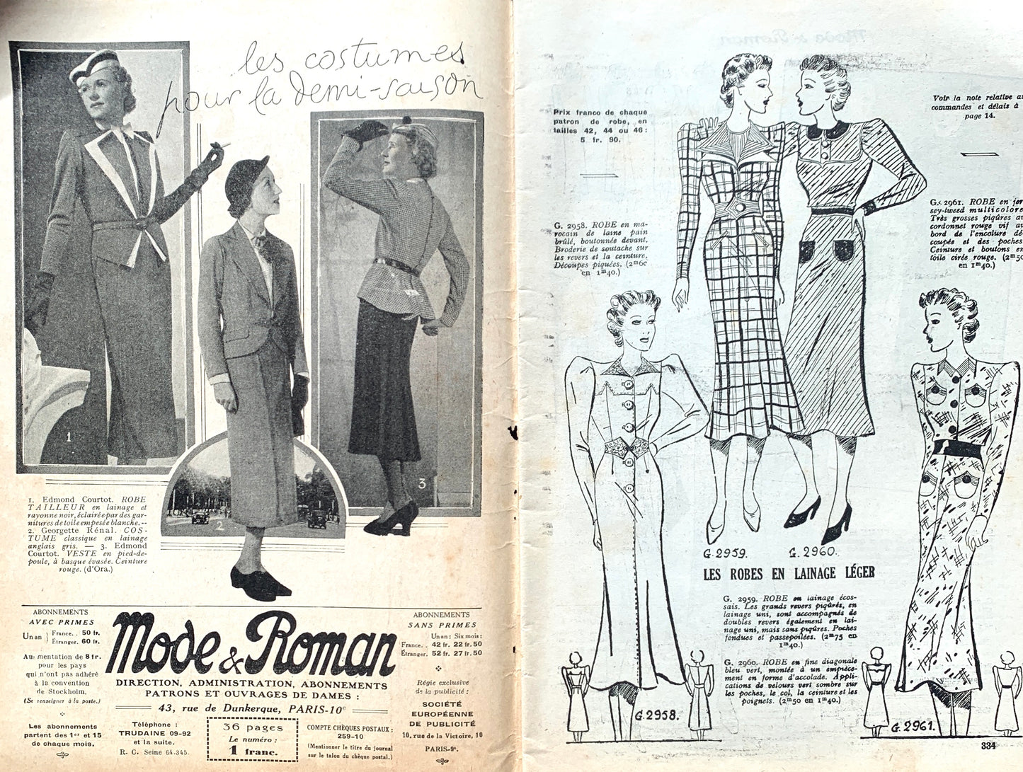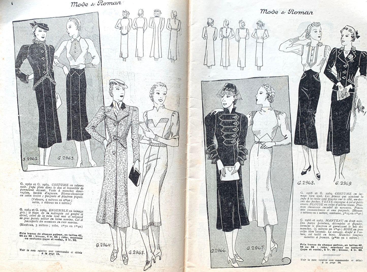 The most fashionable dresses and coats for a late summer outing are featured on the double page front and back cover of the 4th September 1937 copy of Mode & Roman.