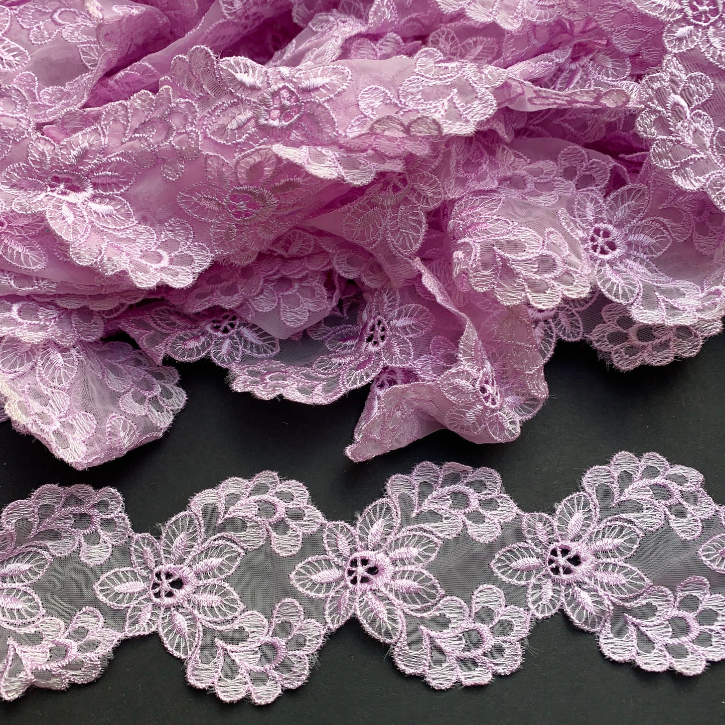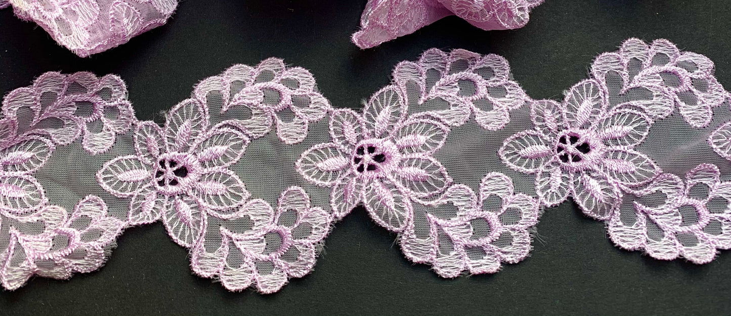 1m of Pretty Boudoir Pink 6cm wide Flowery Vintage Rayon Trim