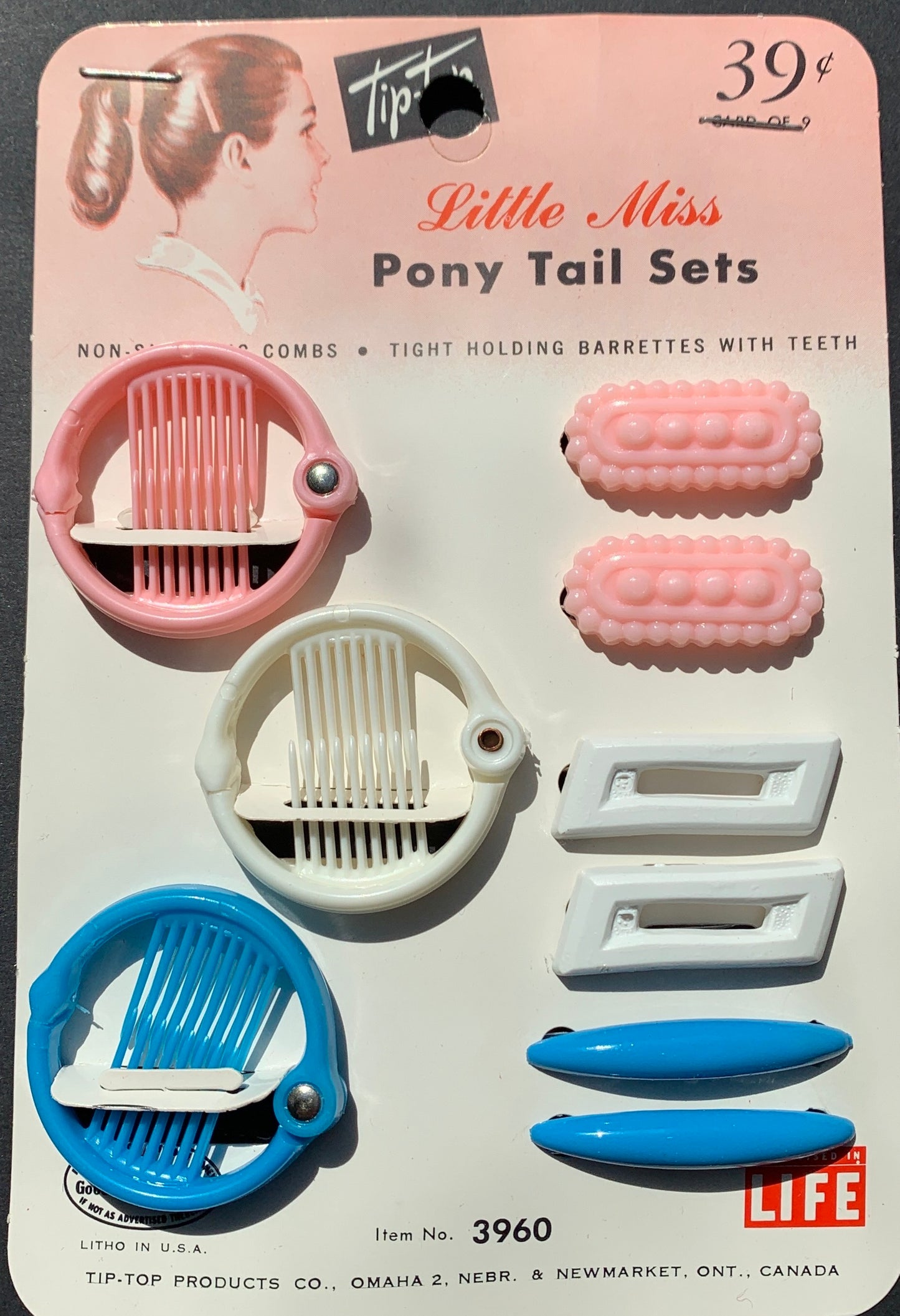 Vintage Little Miss Pony Tail Sets with Ring Grips and Pairs of Hair clips