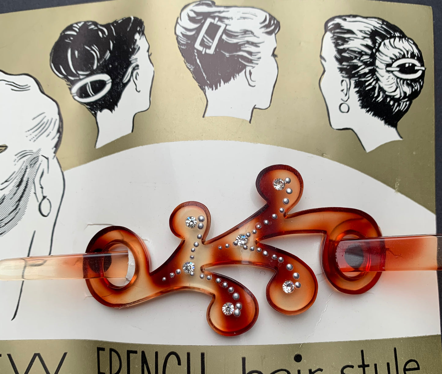 Delicate but full of life this vintage tortoiseshell and diamante barrette is an essential aid to sartorial joie de vivre ..