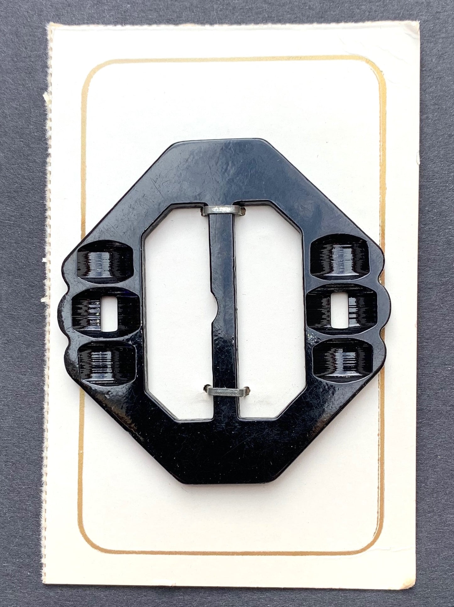 Interesting Shiny Black 8 sided Vintage Deco Buckle