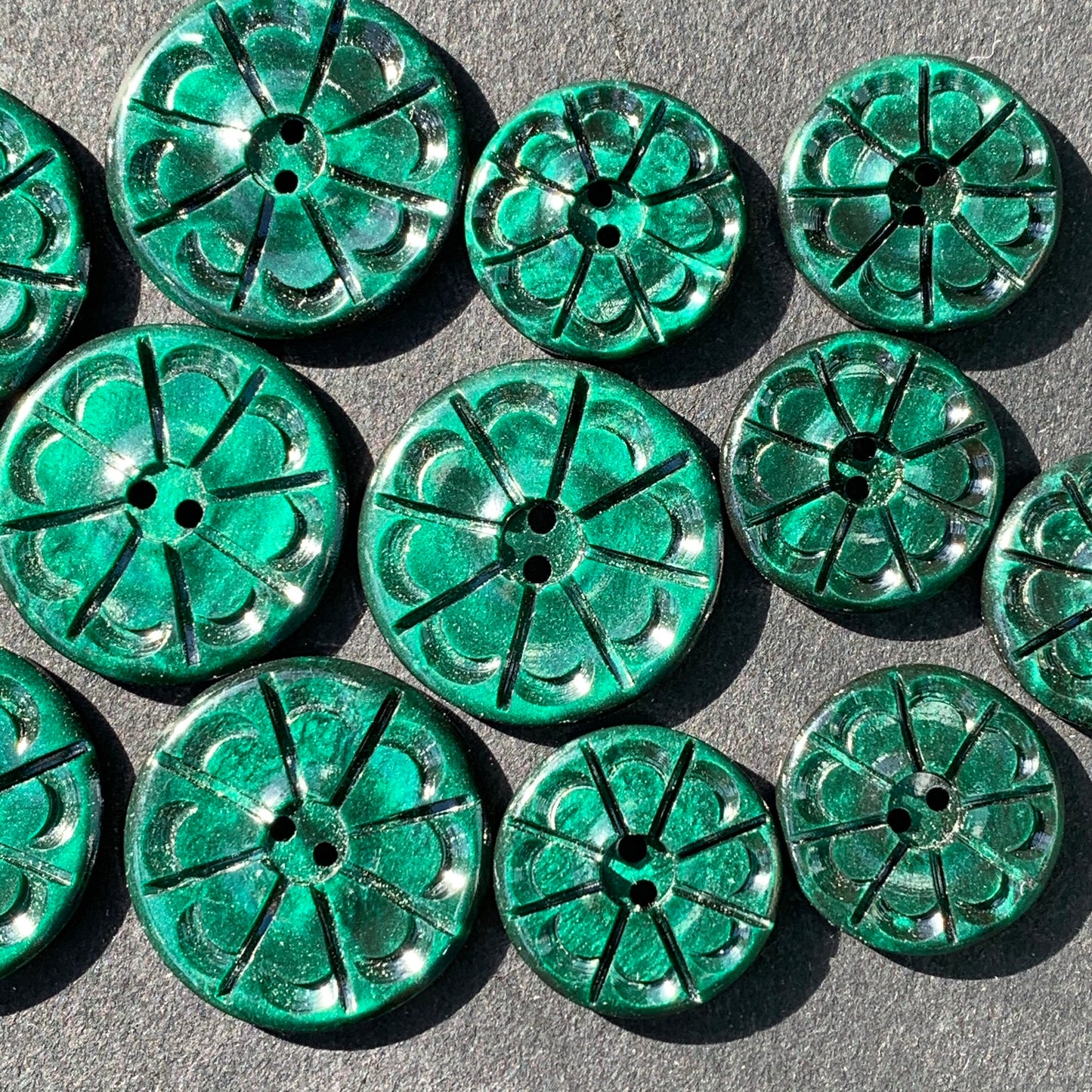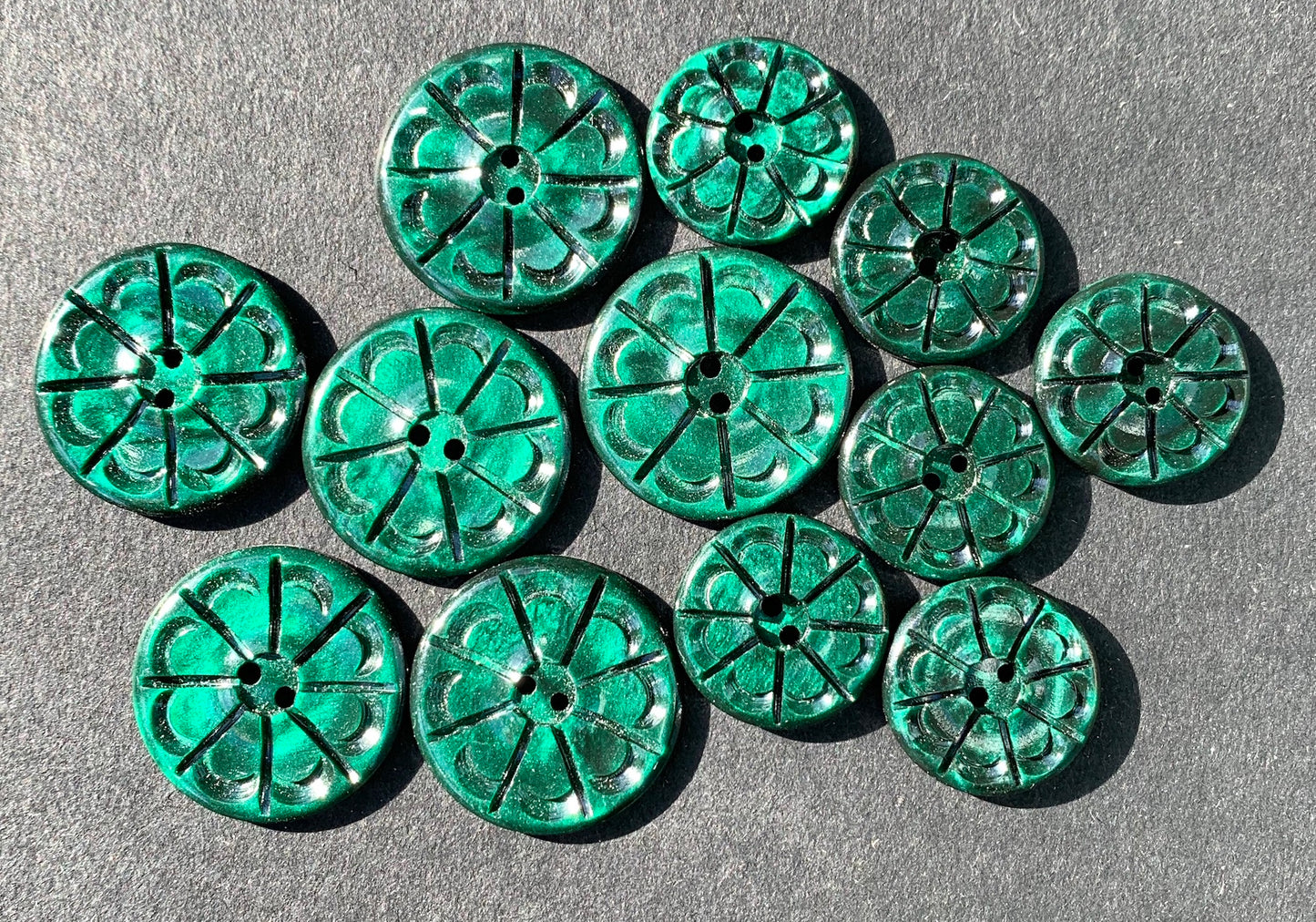 Deep Hunter Green Vintage French 1.5cm or 2.2cm Buttons.