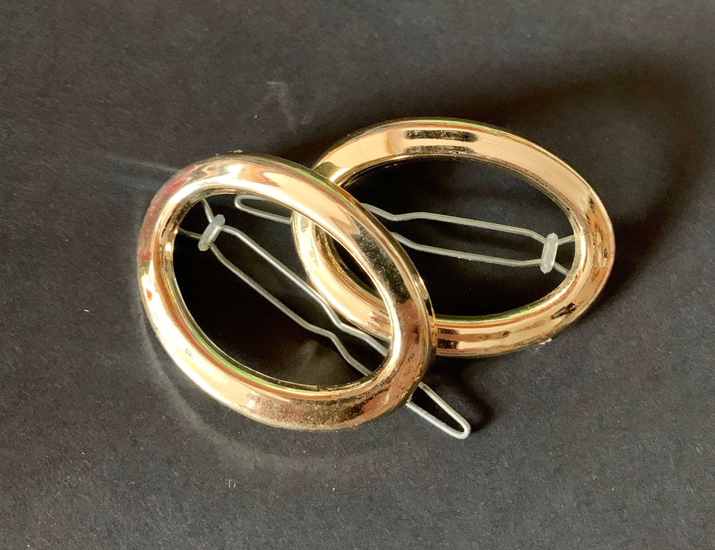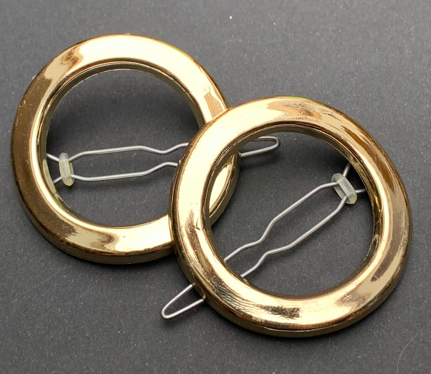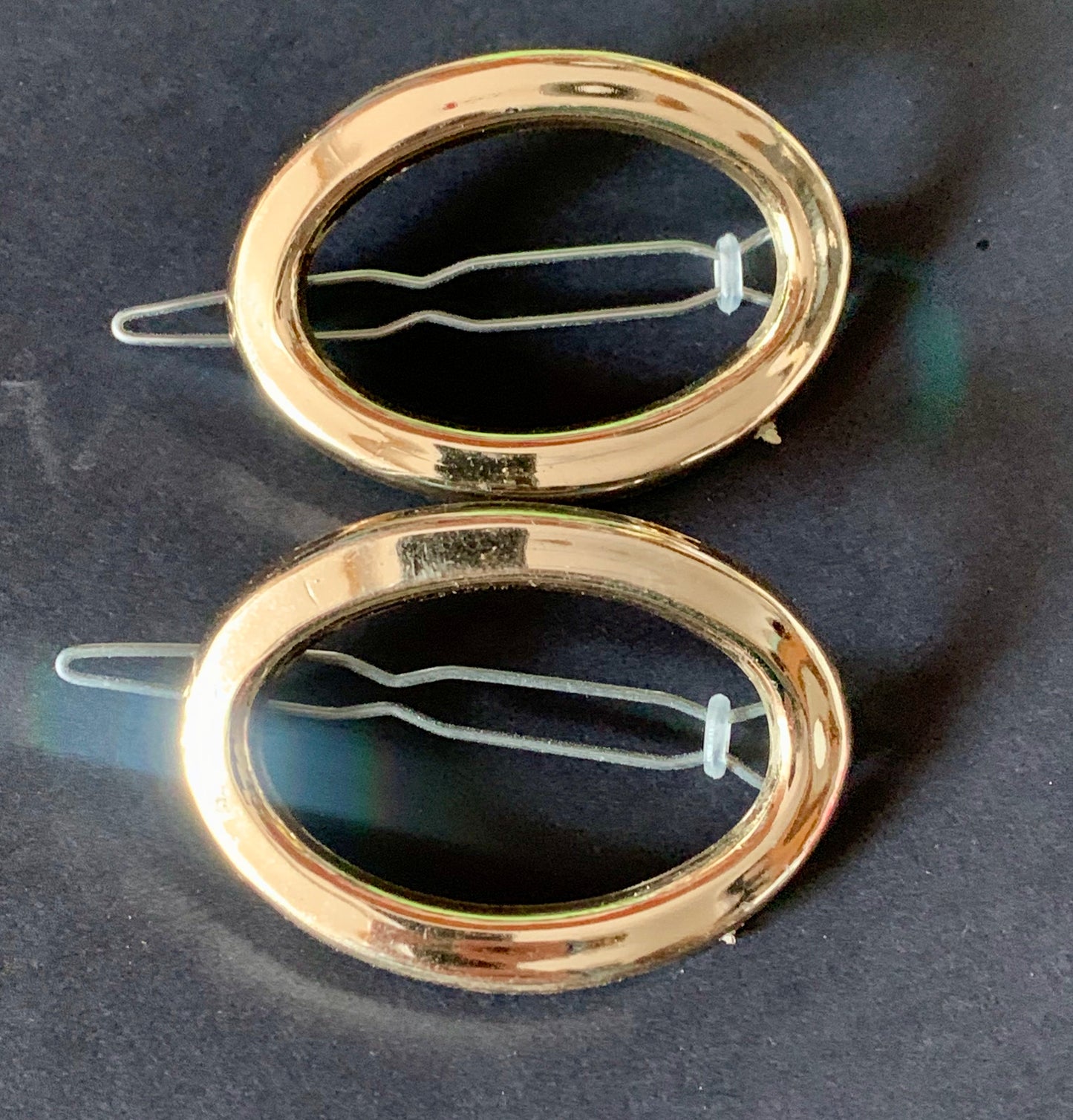 Pair of Shimmery Gold Oval or Round 1960s Hair Clips -4/5cm