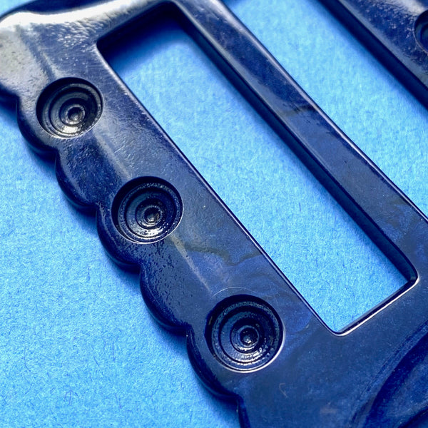 Like the depths of the sea or the inky blue black of the night sky..this vintage casein buckle is an intense dark blue.