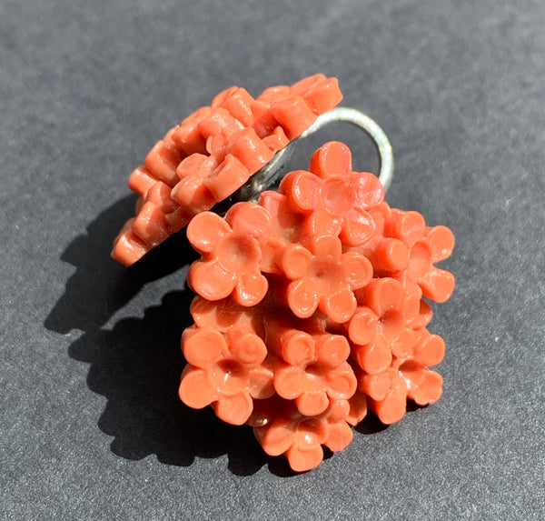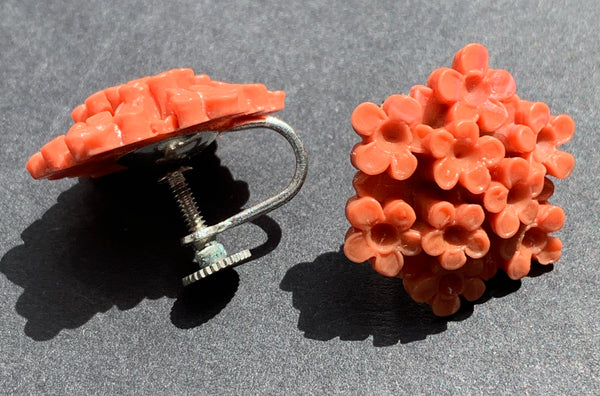 Vintage Coral Pink Little Bunch of Flowers Clip On Earrings