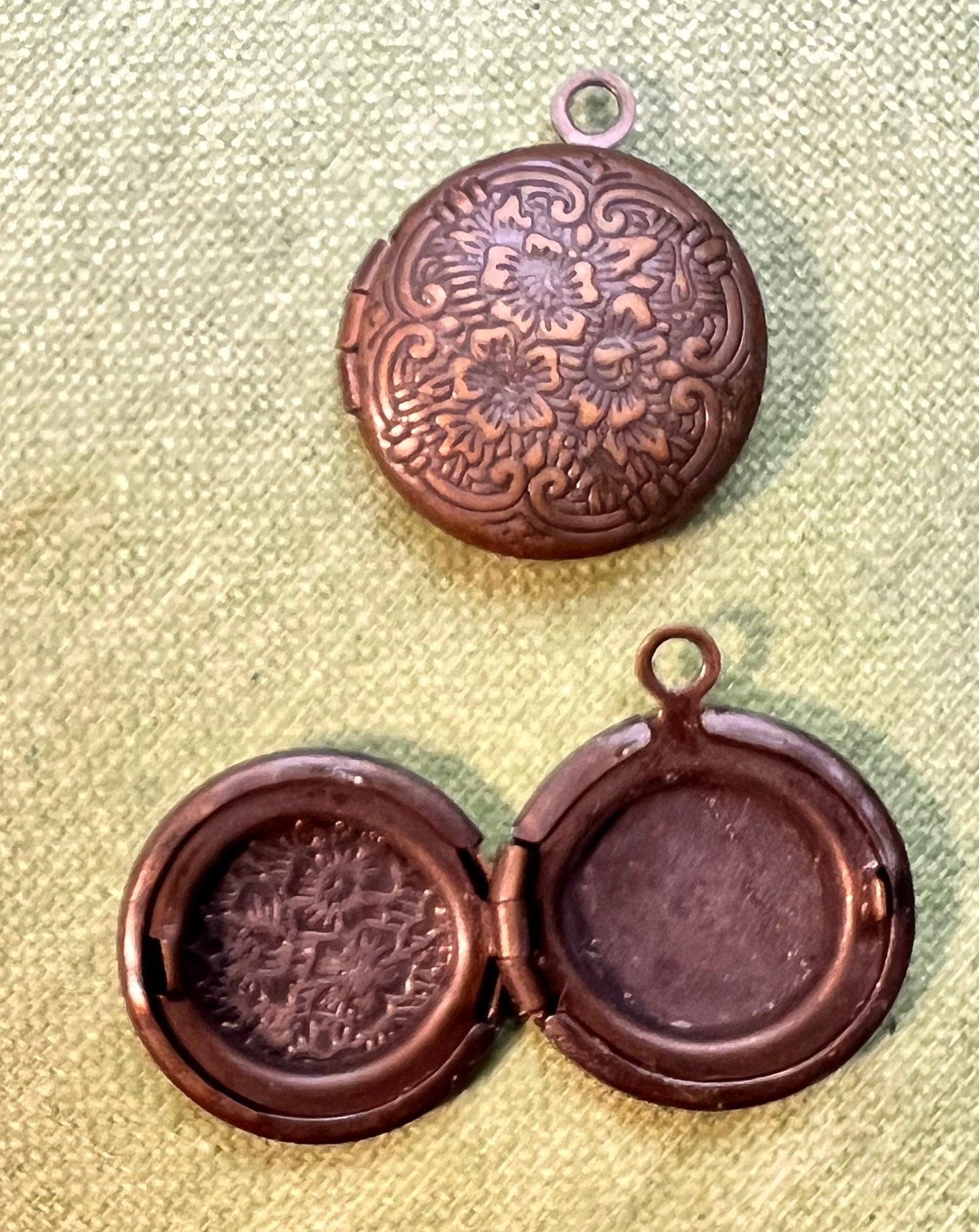 These little lockets are very small and very pretty and they open up so you can put a very small and very pretty picture inside.