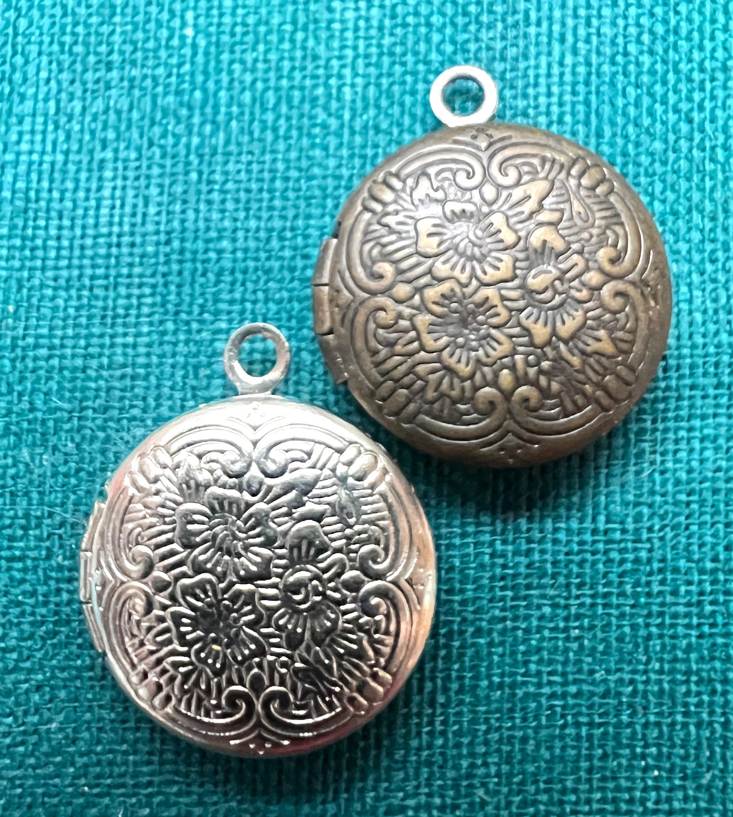 Tiny 1.5cm Floral Lockets - Bronze or Silver Tone