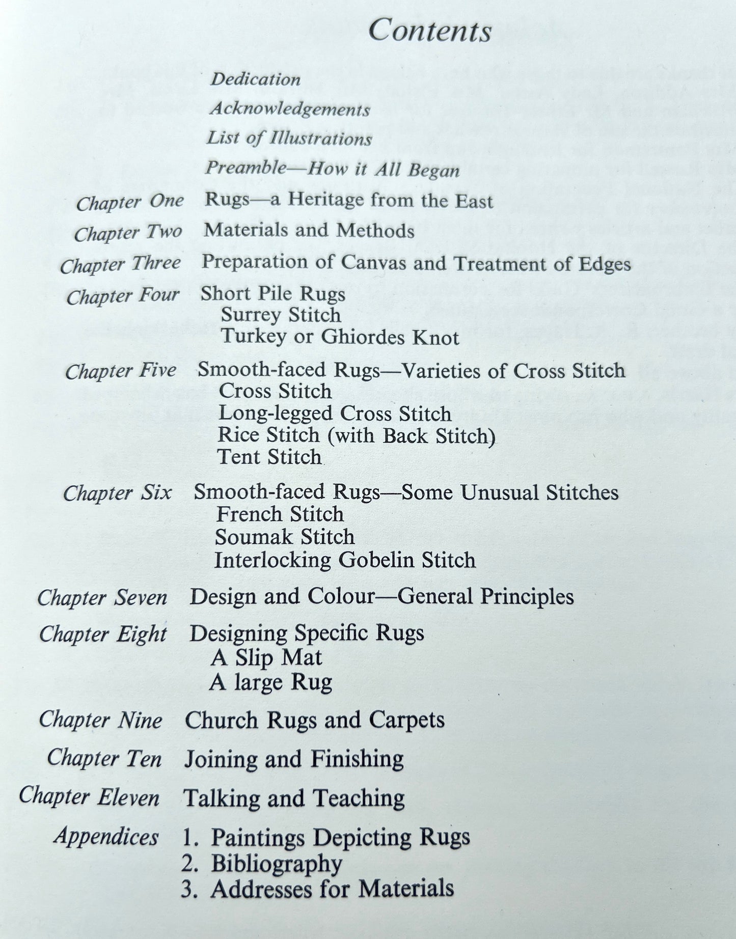 Extensive history, patterns, stitches, tips and examples of Needle-Made Rugs.