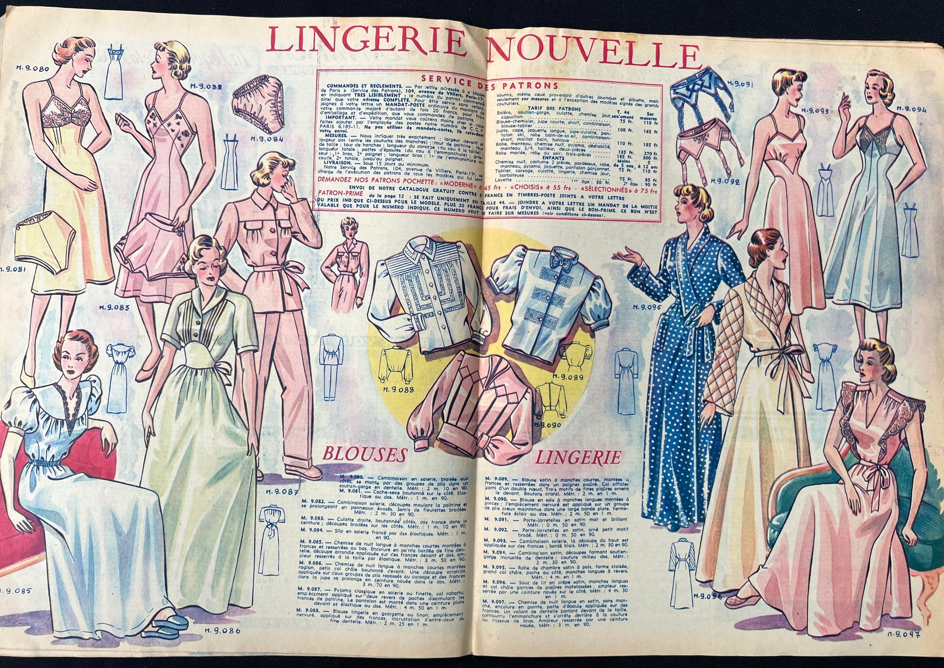 Inside are lovely illustrations of nightwear and lingerie, day dresses and clothes for housework.