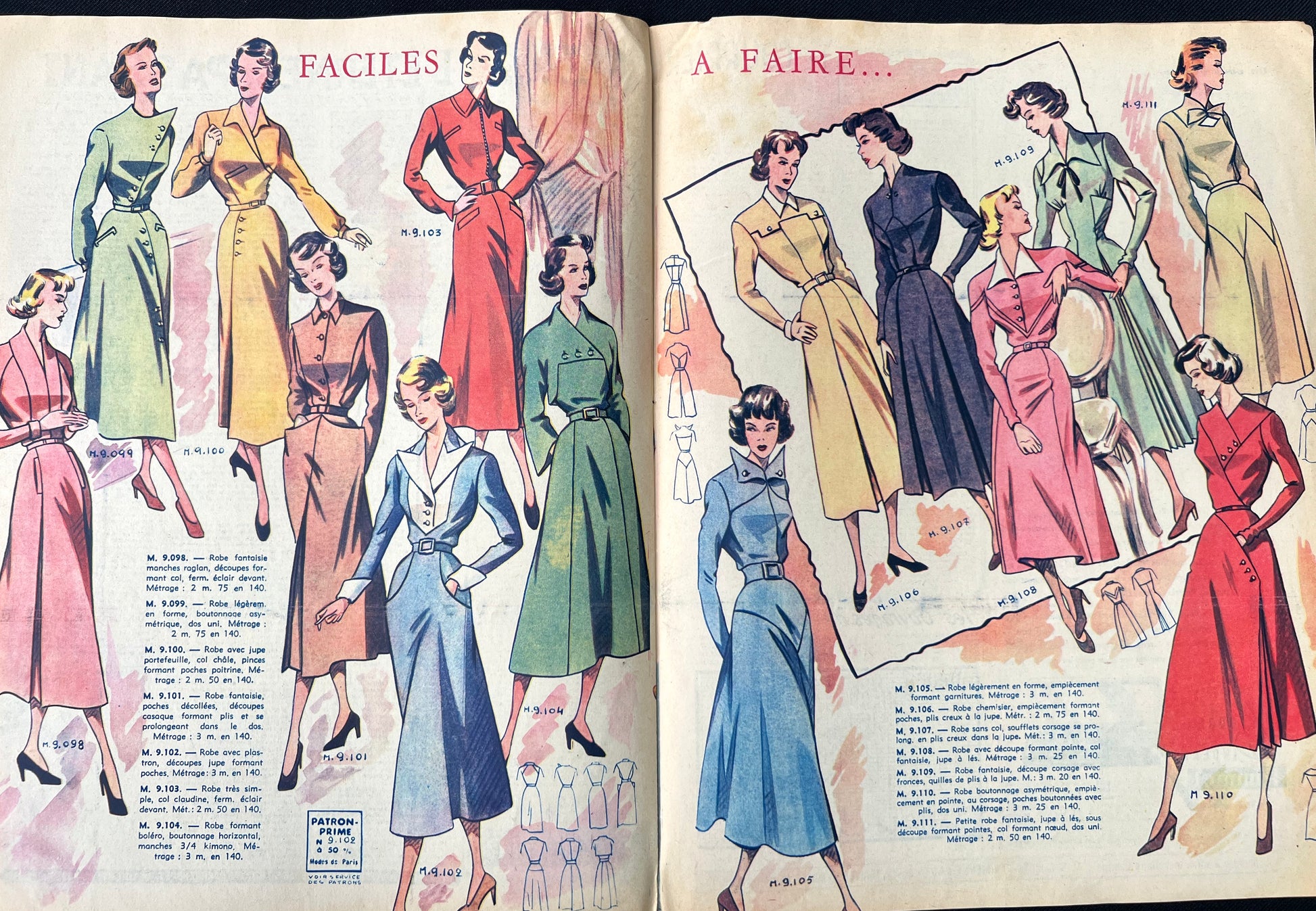 There are 16 pages in total (31cm x 24cm) which are printed on rough paper as is the case with all the French fashion papers of this postwar era.