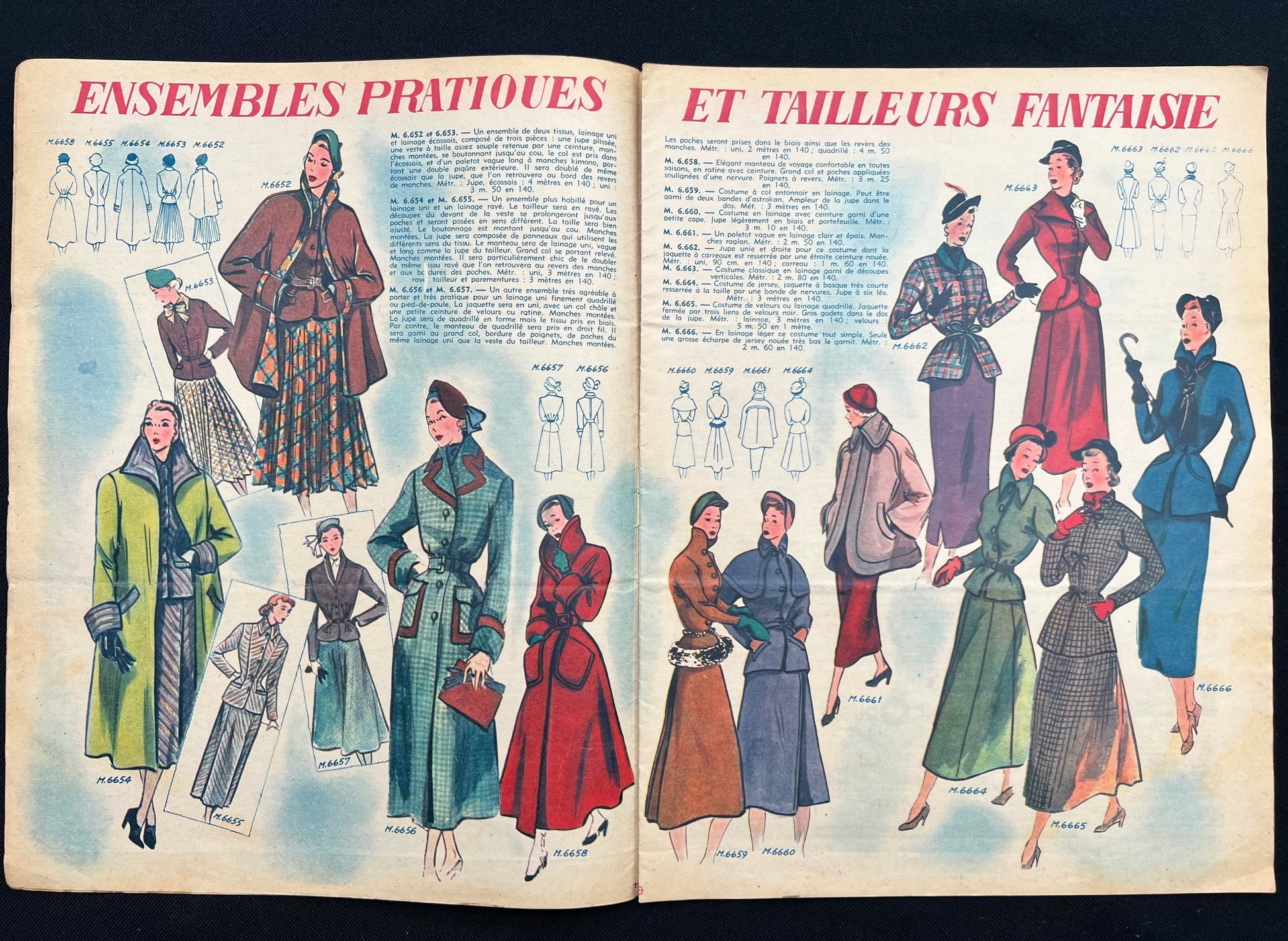 There are 16 pages in total (31cm x 24cm) which are printed on rough paper as is the case with all the French fashion papers of this postwar era.