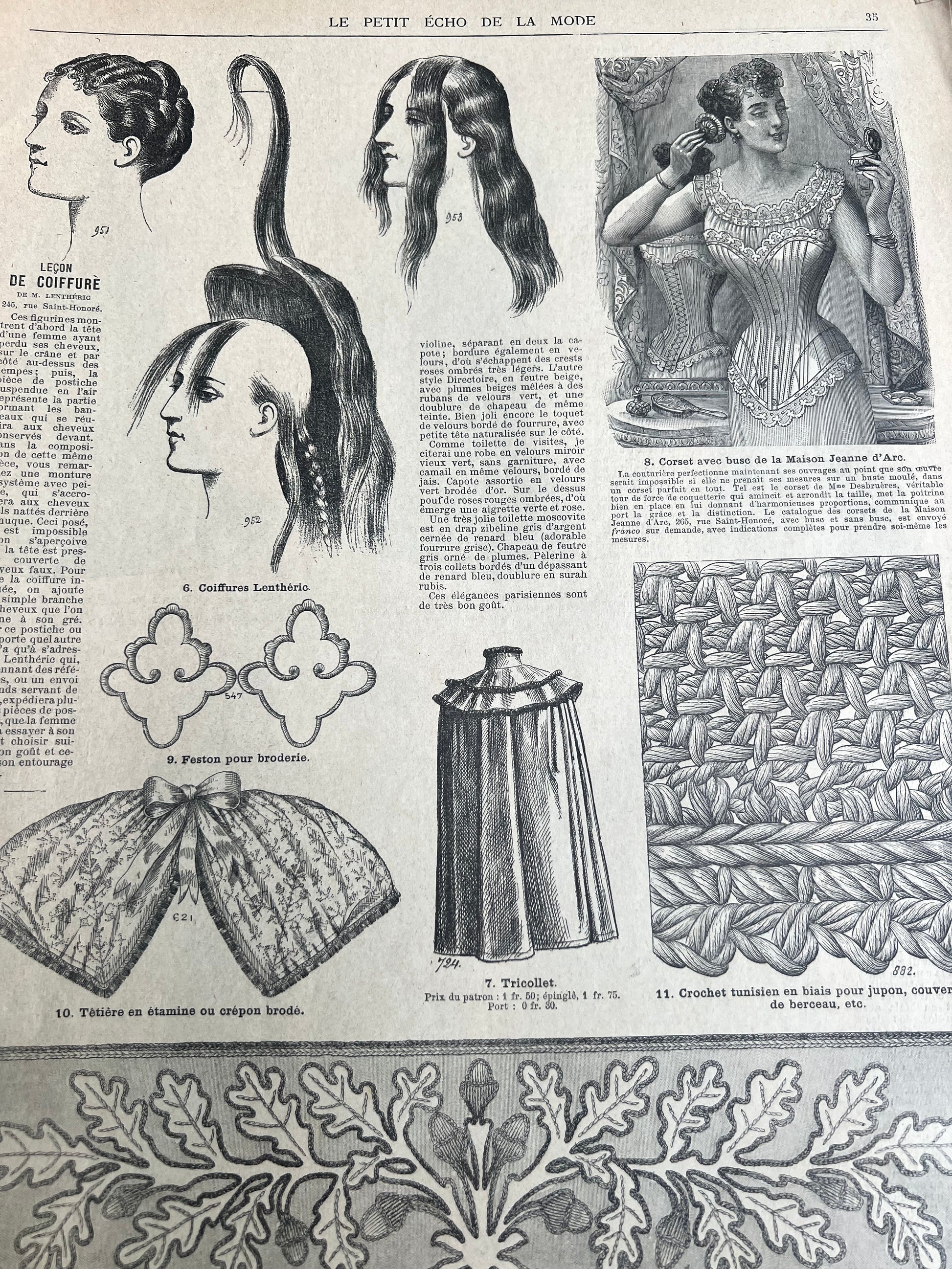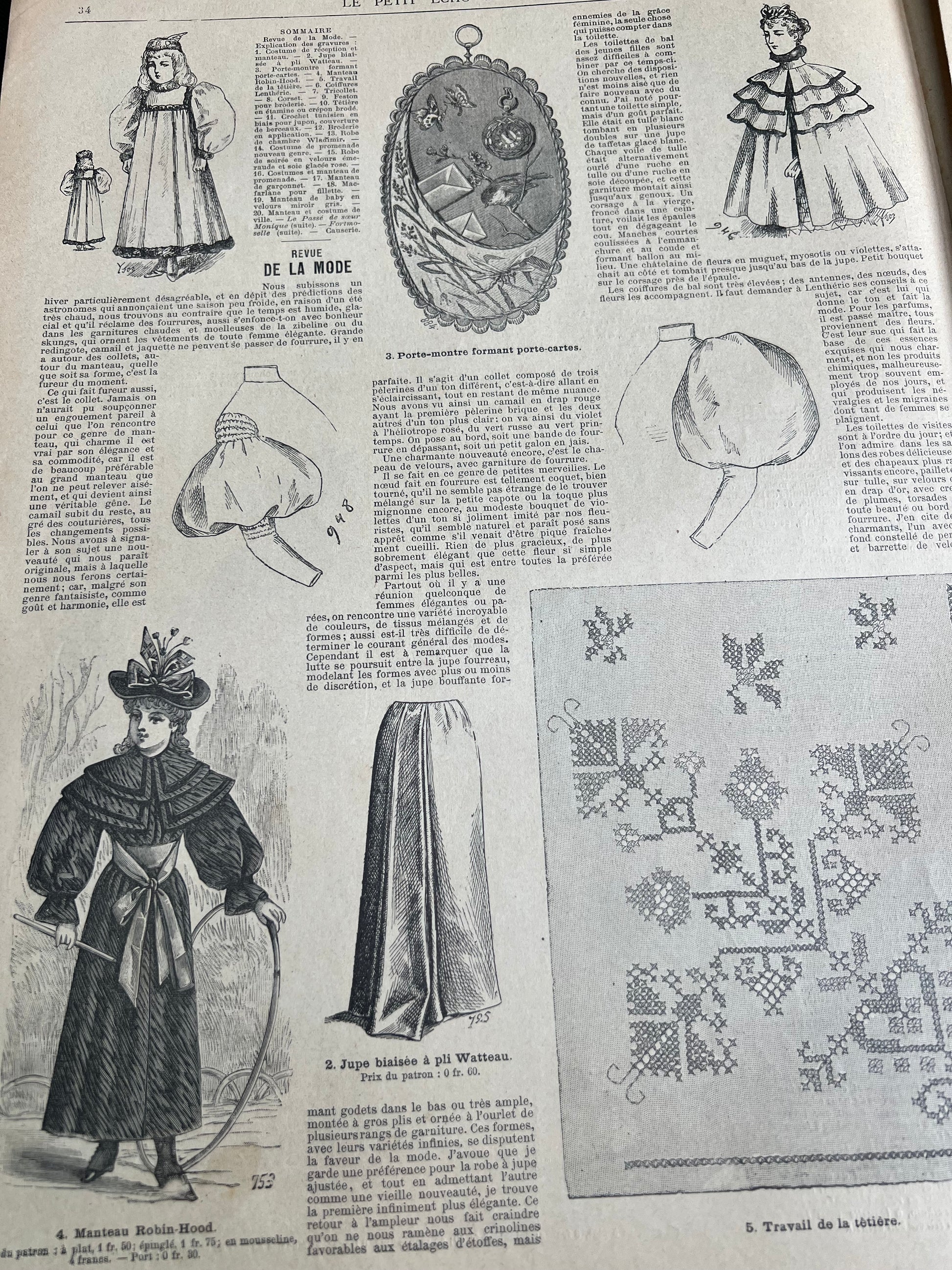 29th January 1893 issue of the French Fashion Paper Le Petit Echo de la Mode - 8 black and white pages of womens fashion illustrations, crafts, news, advice and 1890s adverts.