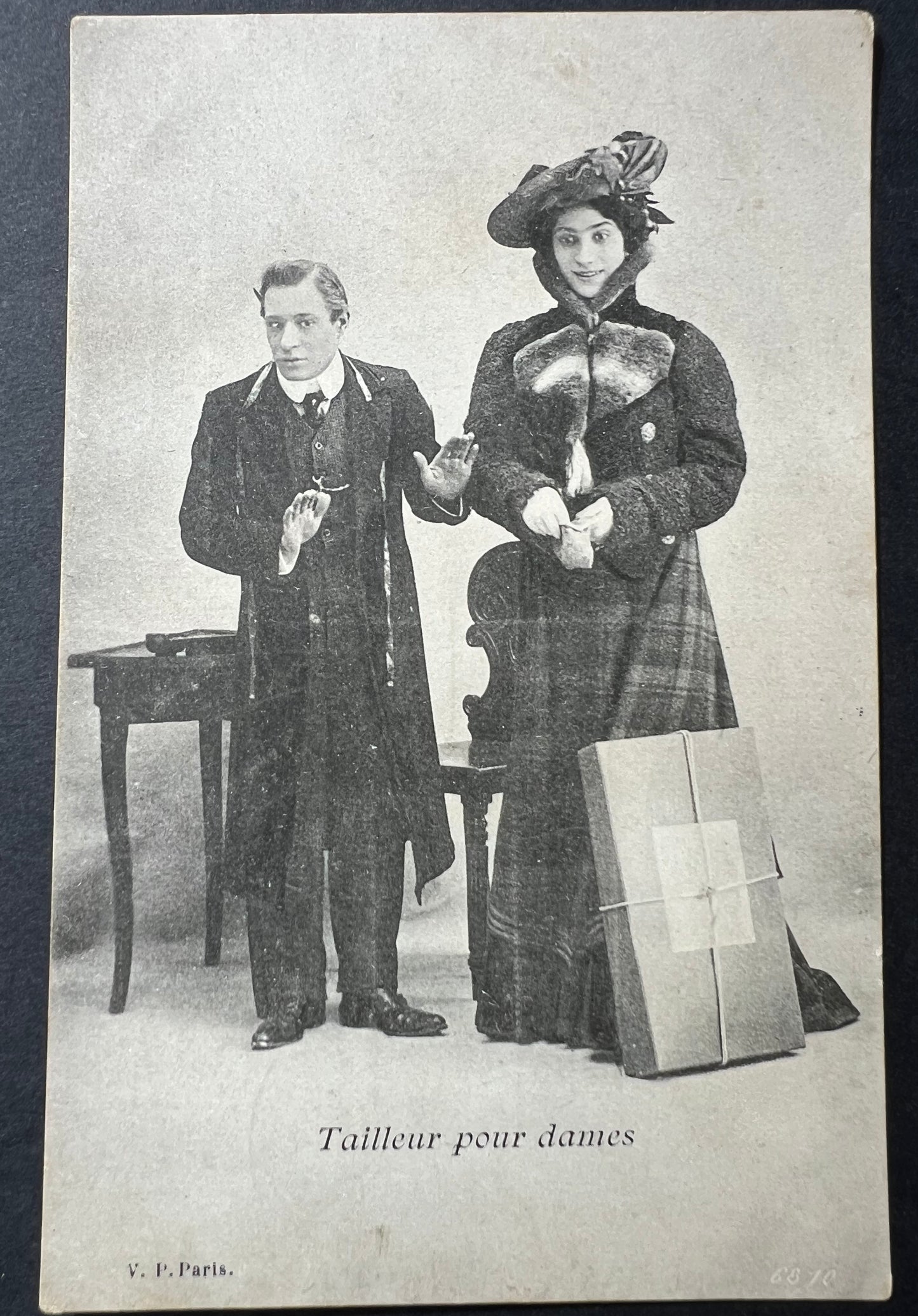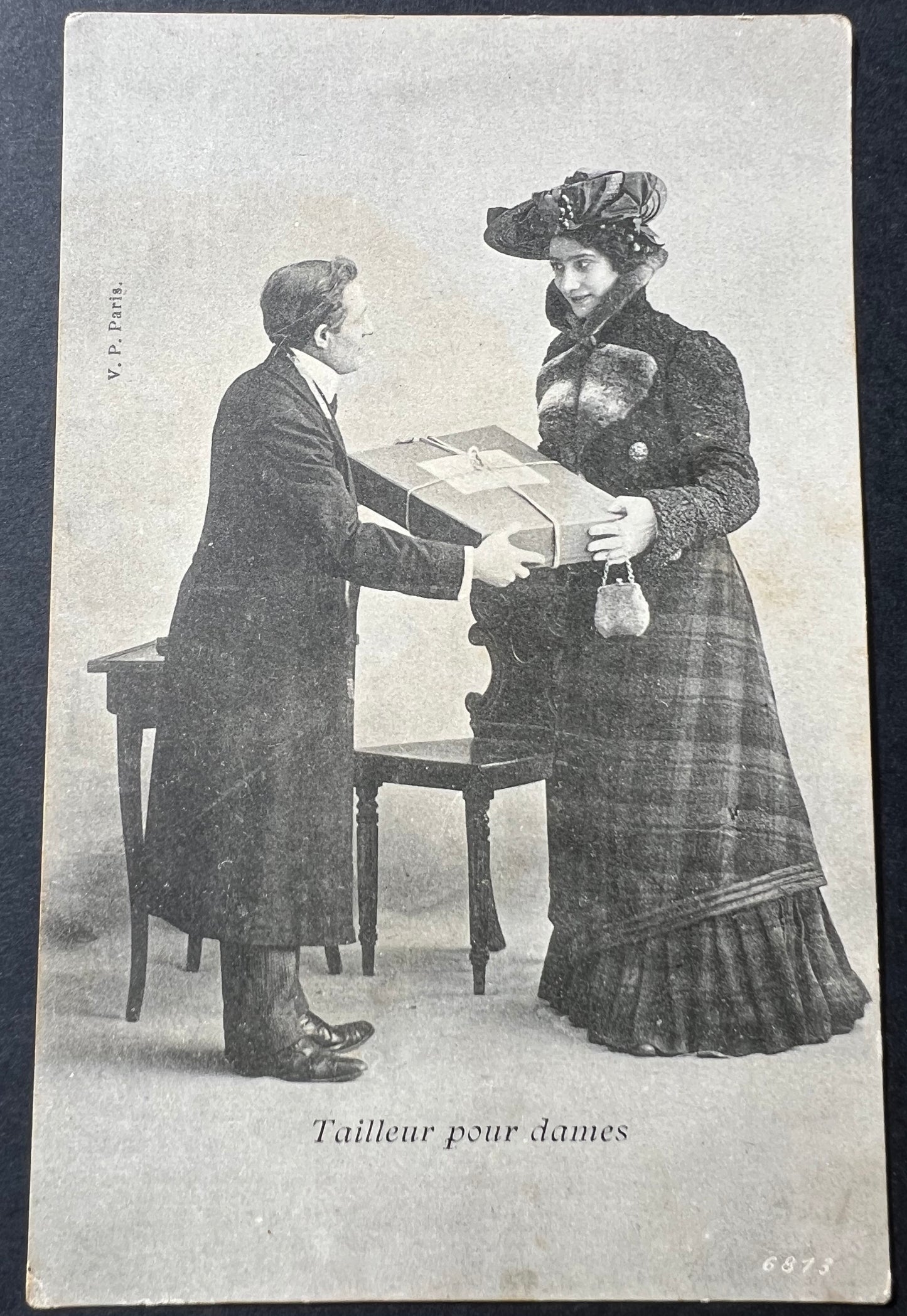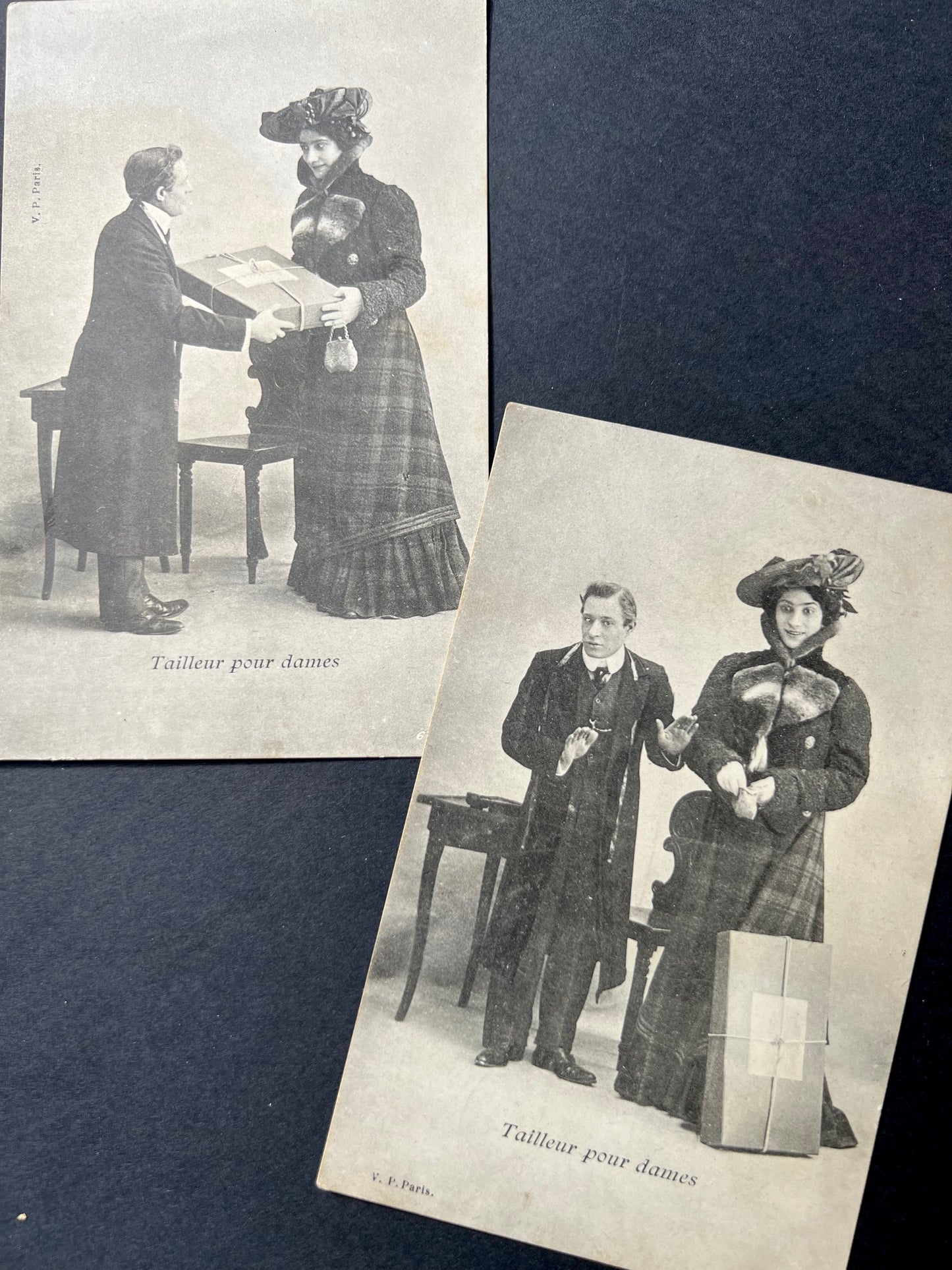 A Lady and Her Tailor...2 Unused Old French Postcards