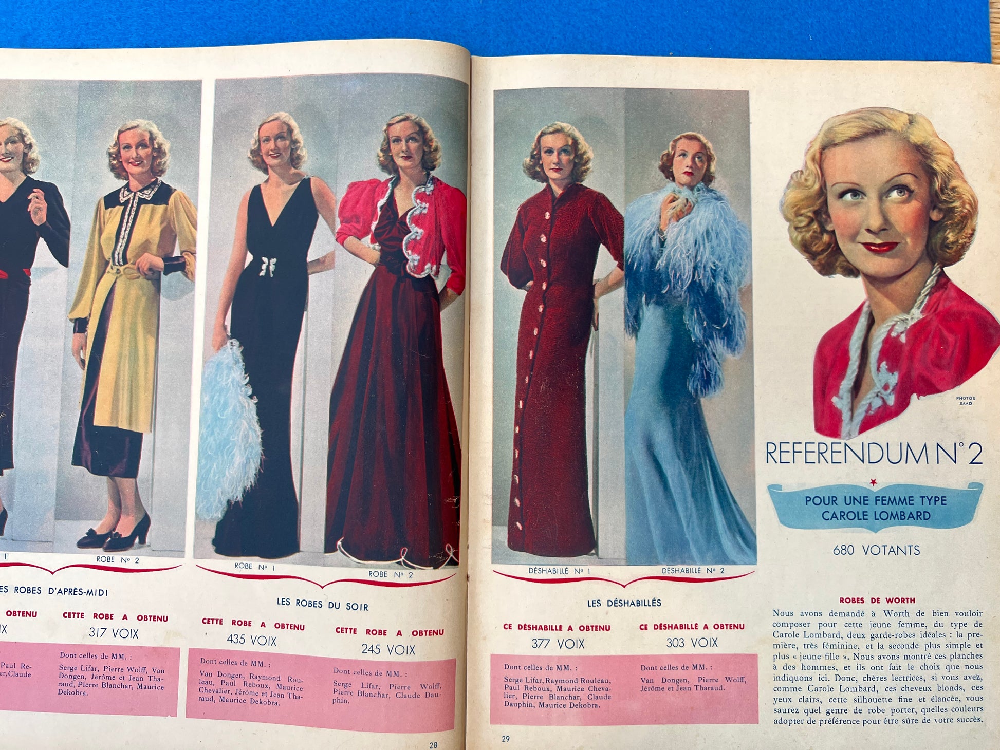 25th February 1938 French MARIE CLAIRE incl Tips on Style of Dietrich, Hepburn +Lombard and Fancy Dress Costumes.