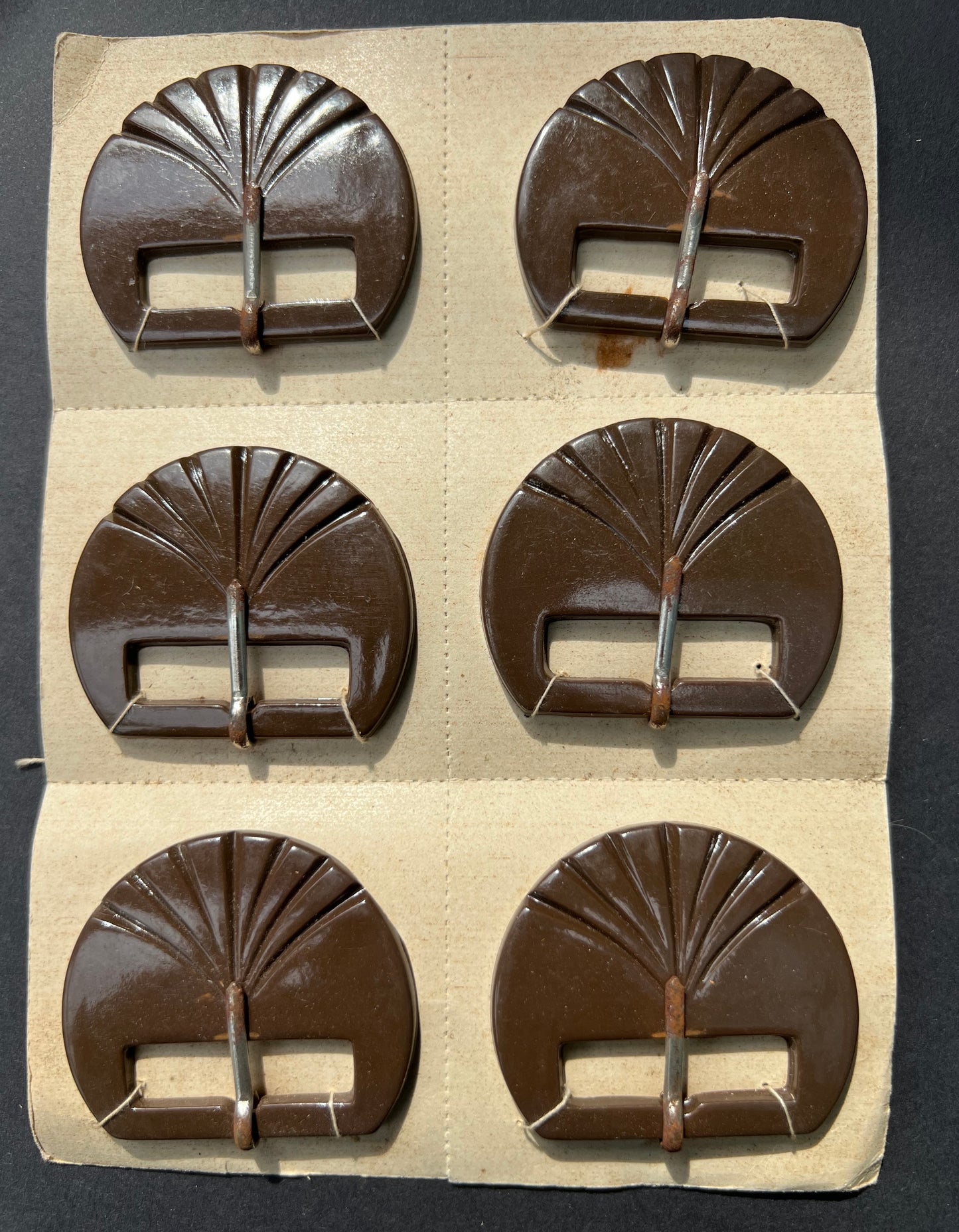 Sheet of 6 1940s Buckles with Rusty Prongs