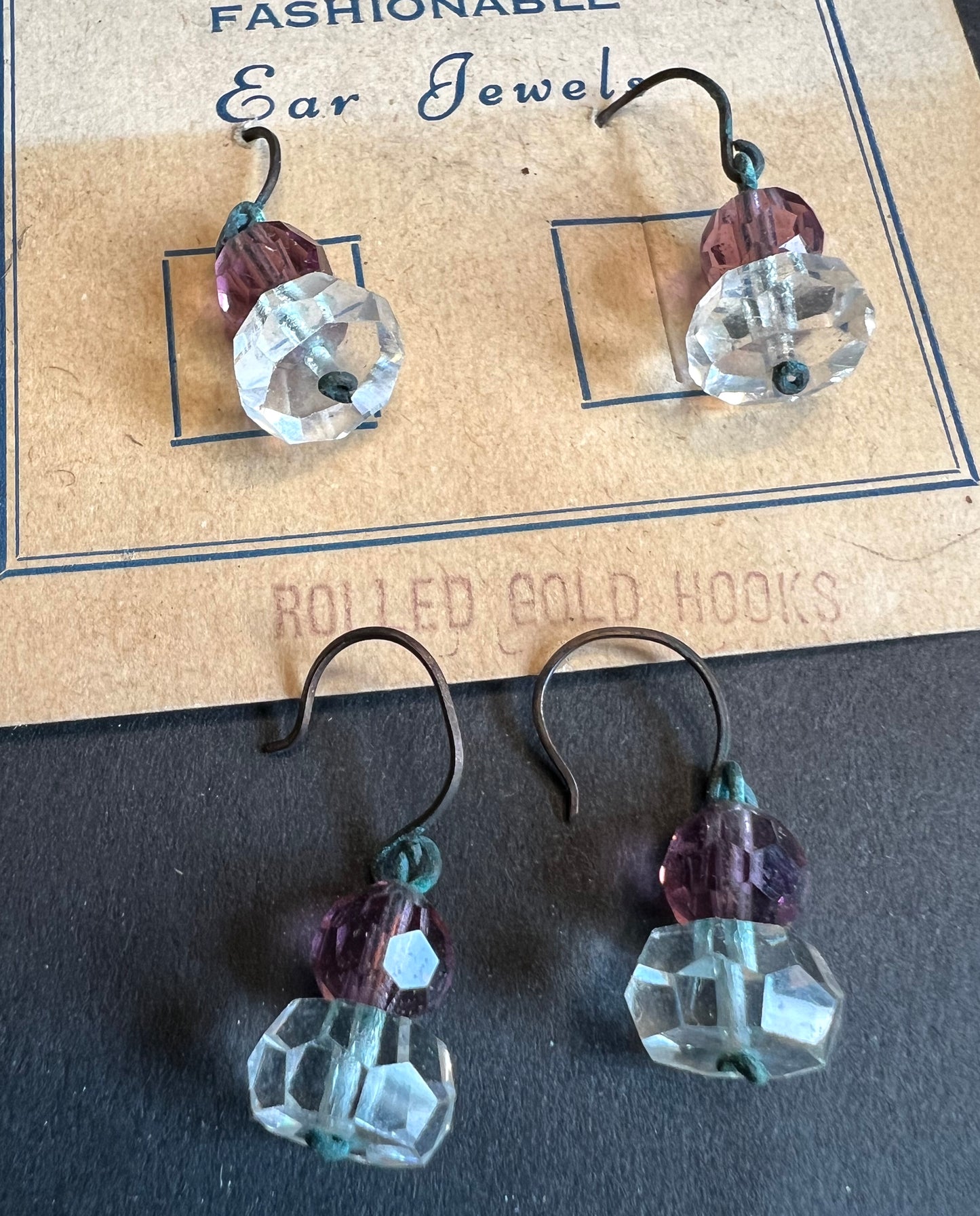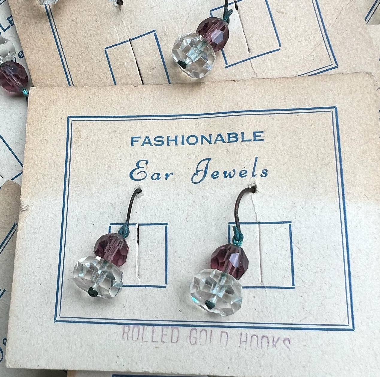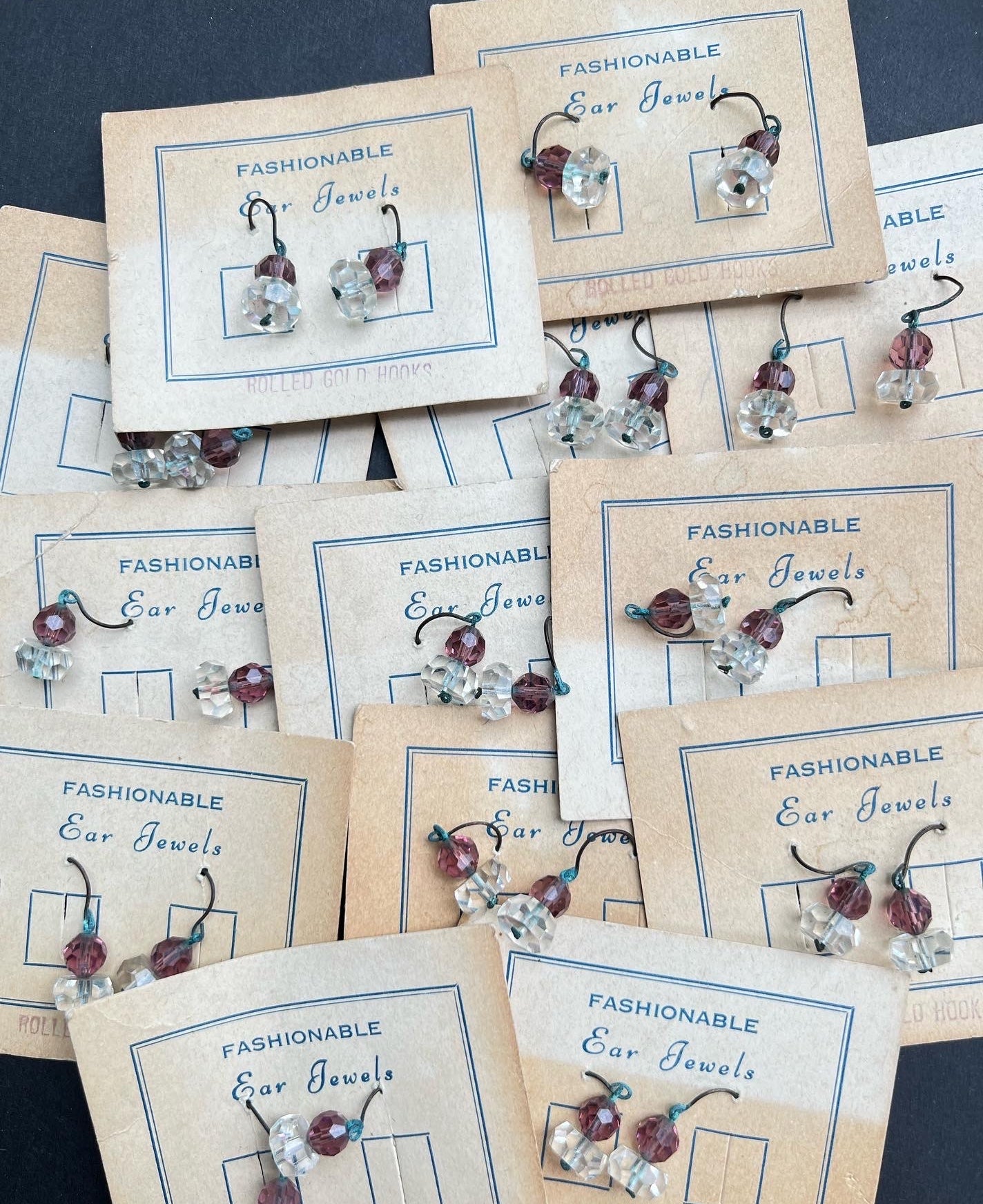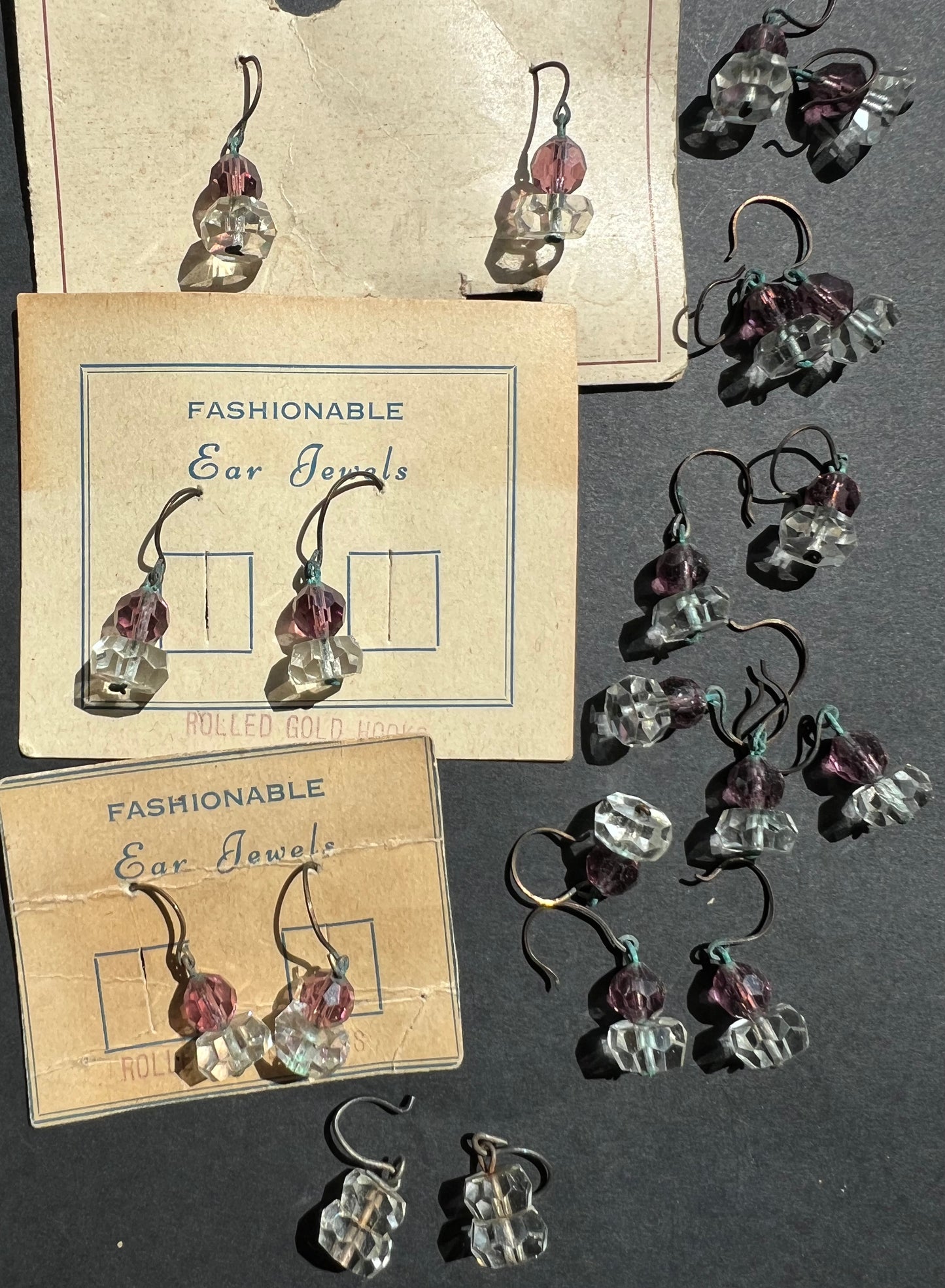 12 pairs of 1930s Crystal Earrings with corroded wires