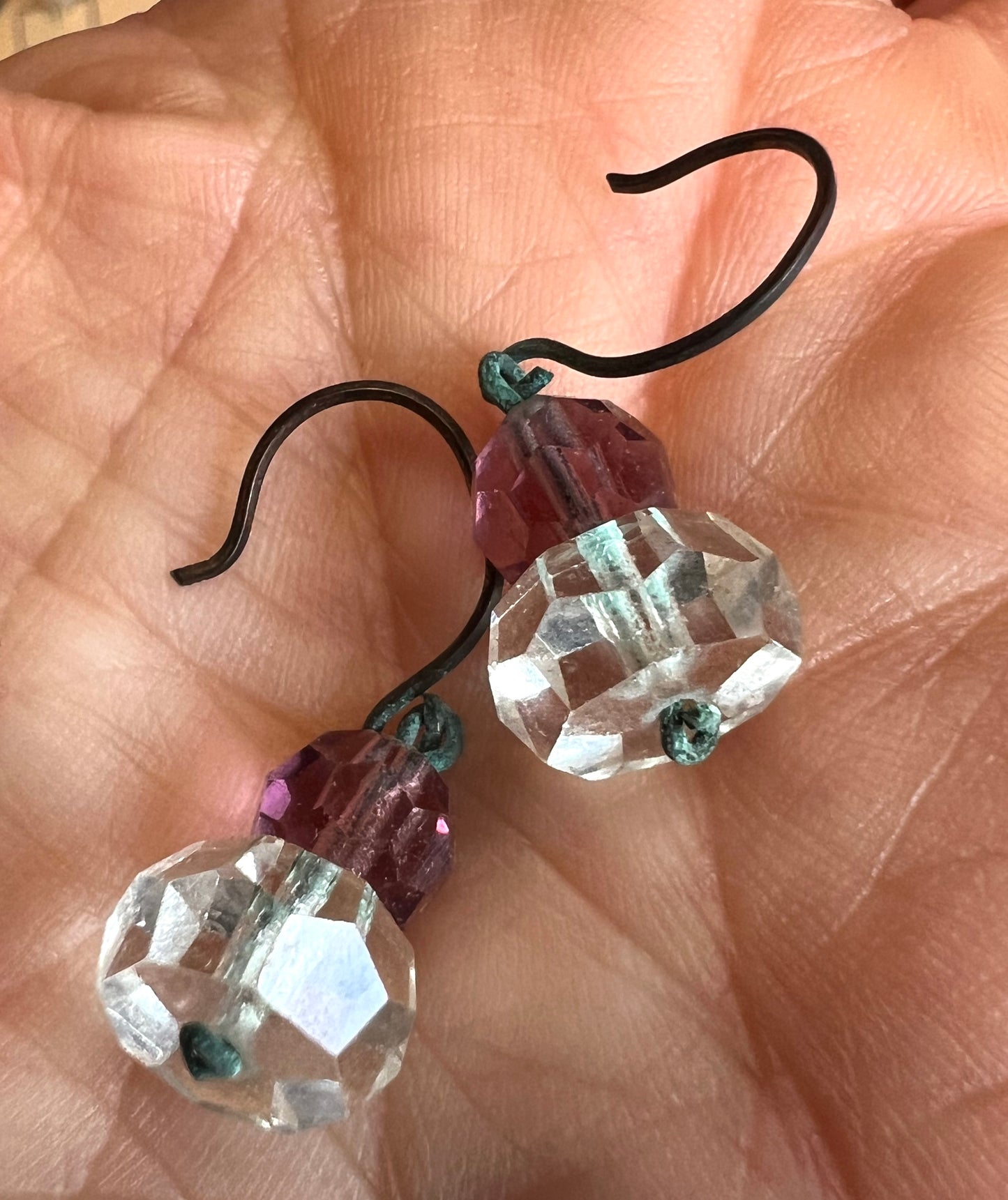 The ear hooks are "rolled gold" and along with the wires holding the crystals together, have discoloured .