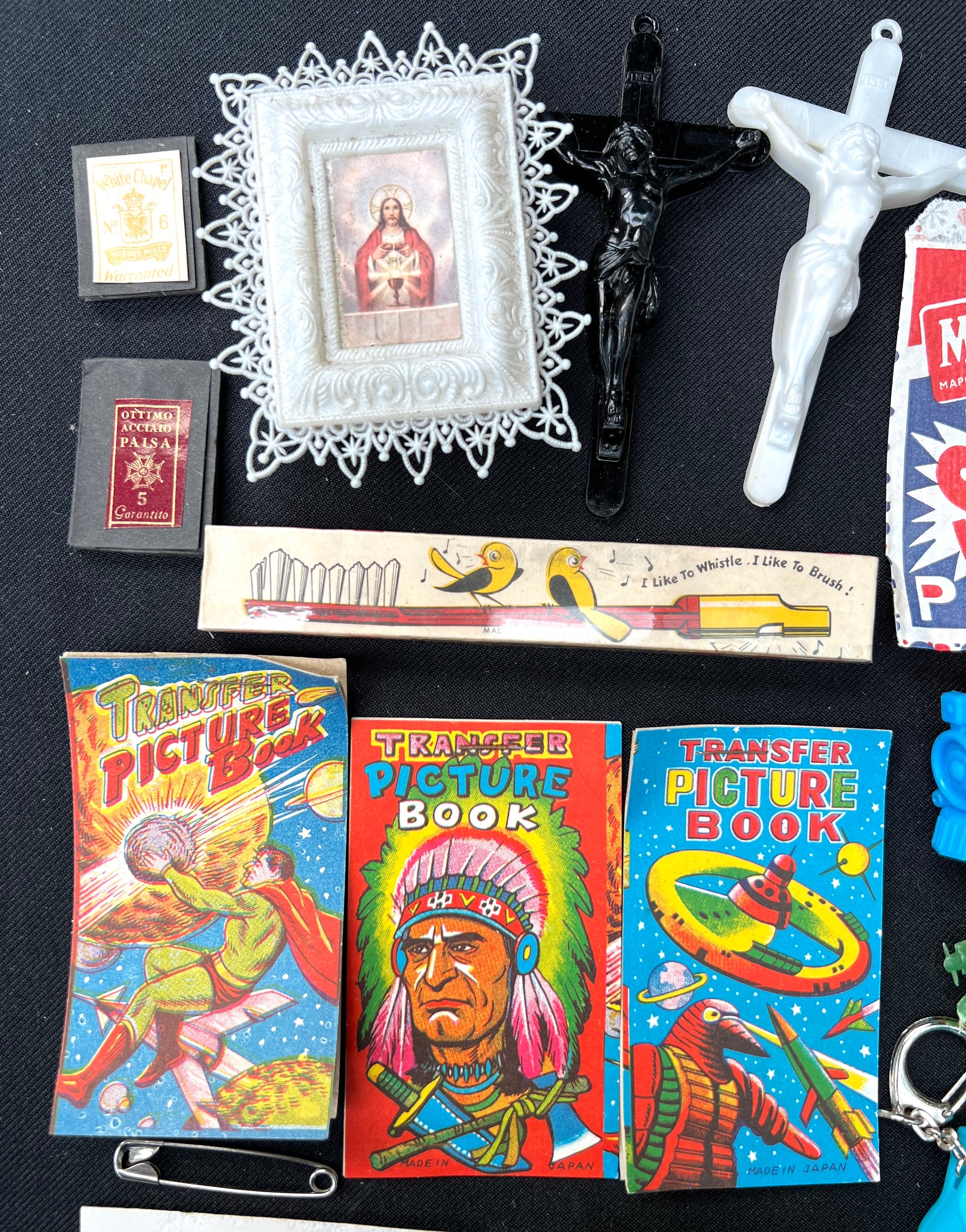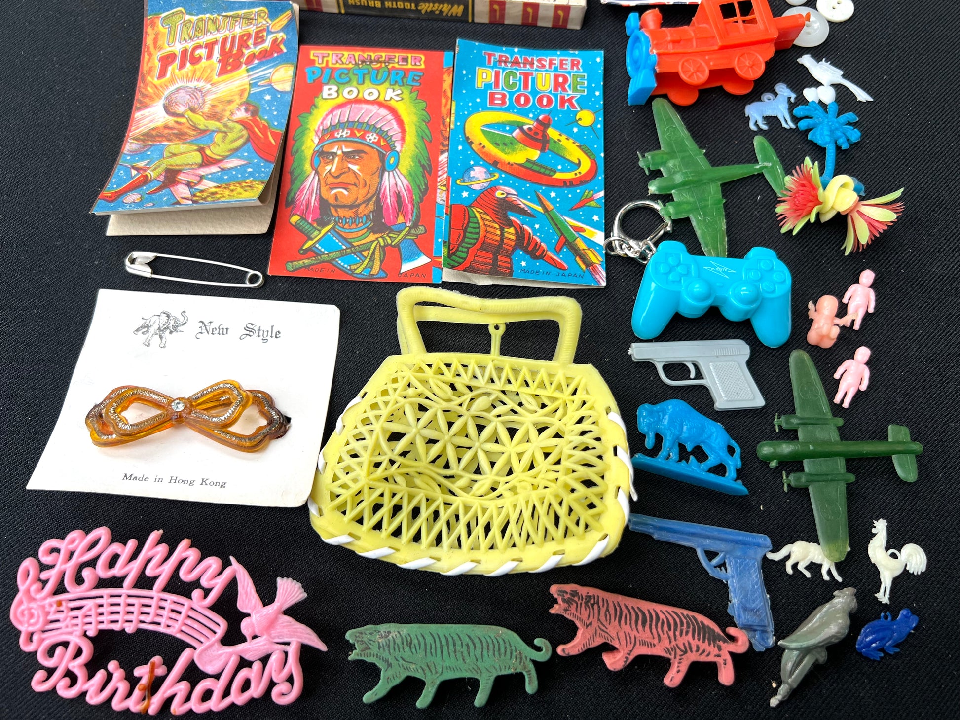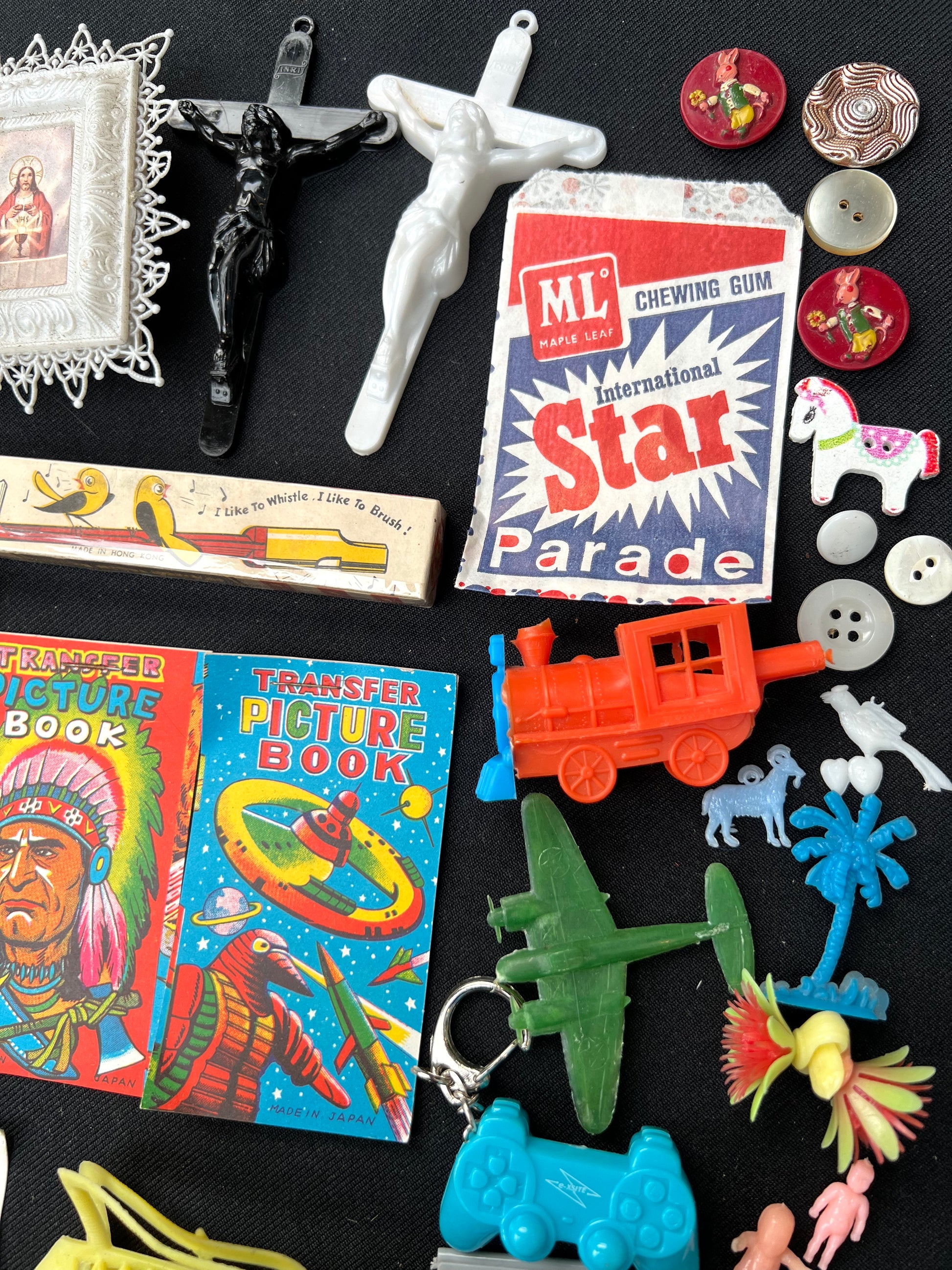 Job Lot of Vintage Toys Buttons, Transfers Etc from the Bottom of a Box (D)