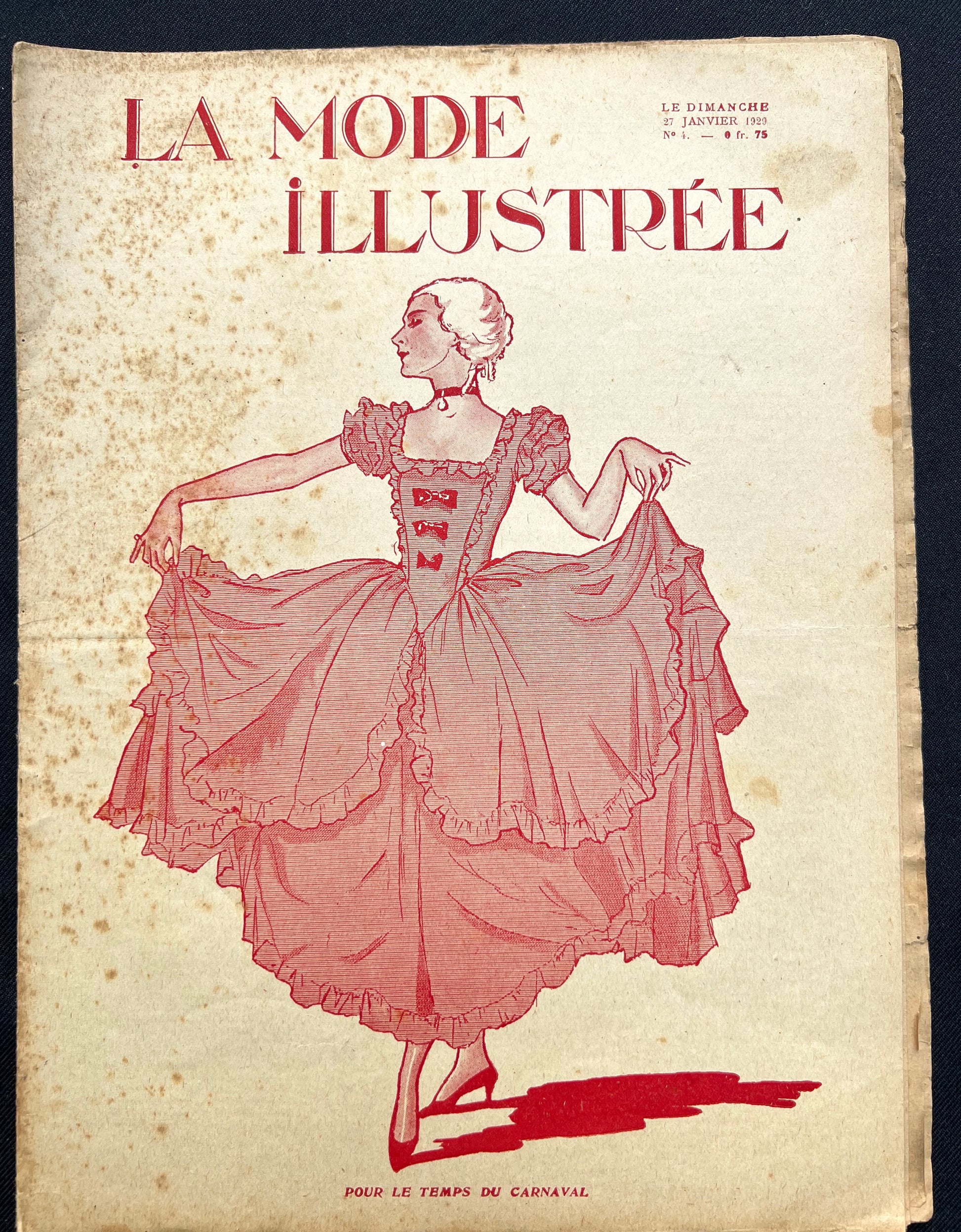 This 27th January 1929 issue of the French fashion paper La Mode Illustree has 16 black and white pages of late 1920s fashion illustrations including childrens fancy dress and womens lingerie, plus lots of craft and needlework, interiors and 1920s adverts.