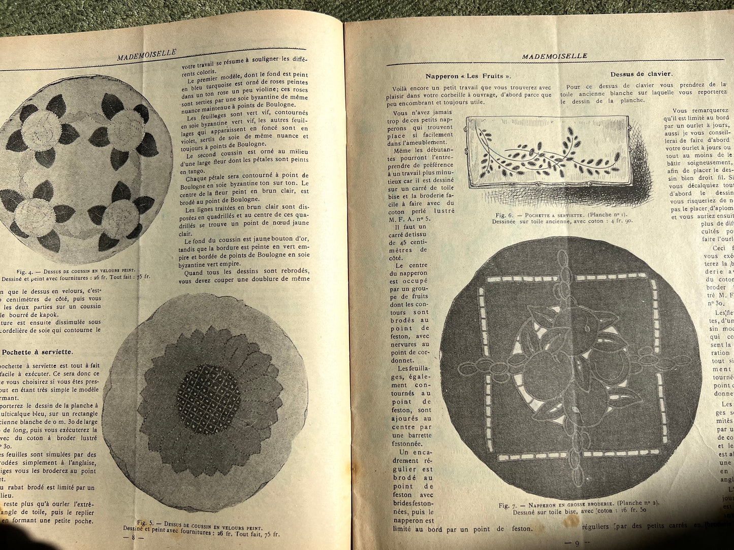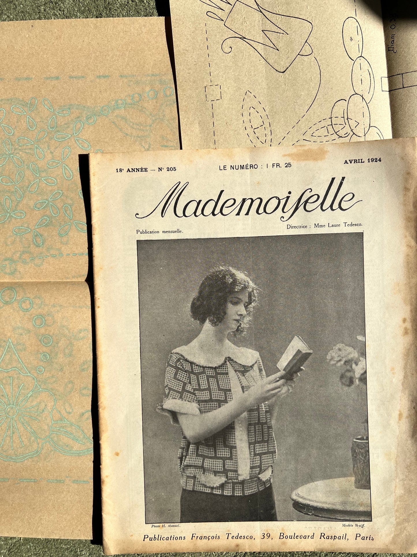 April 1924 French "Mademoiselle" incl Needlework Patterns, Fashion, Interiors etc