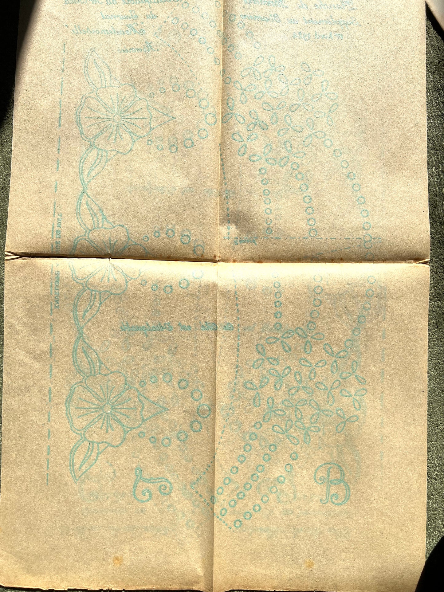 There are 28 pages of 1920s crafts, including a double sided needlework pattern shown in the 4th and 5th photos and an iron-on embroidery pattern shown in the 8th photo.
