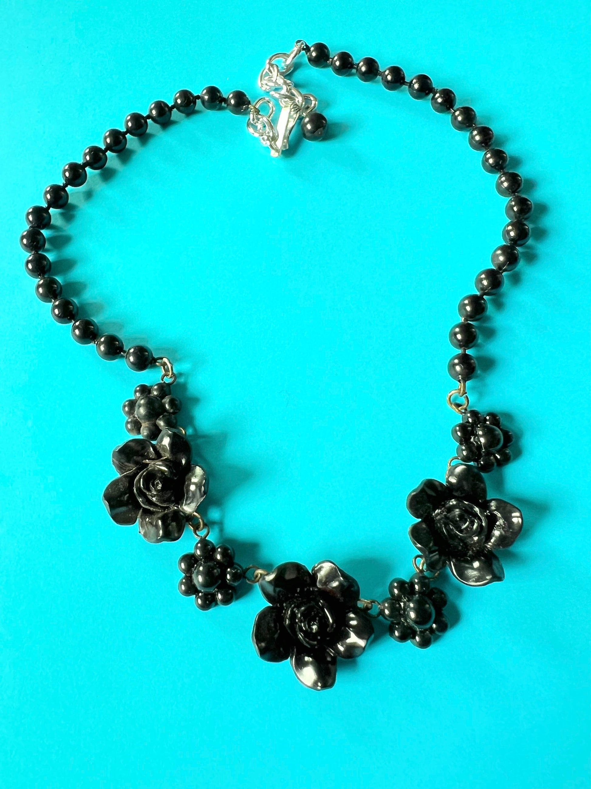 Darkly Pretty Black Flowers 1950s Necklace. 45cm/18"
