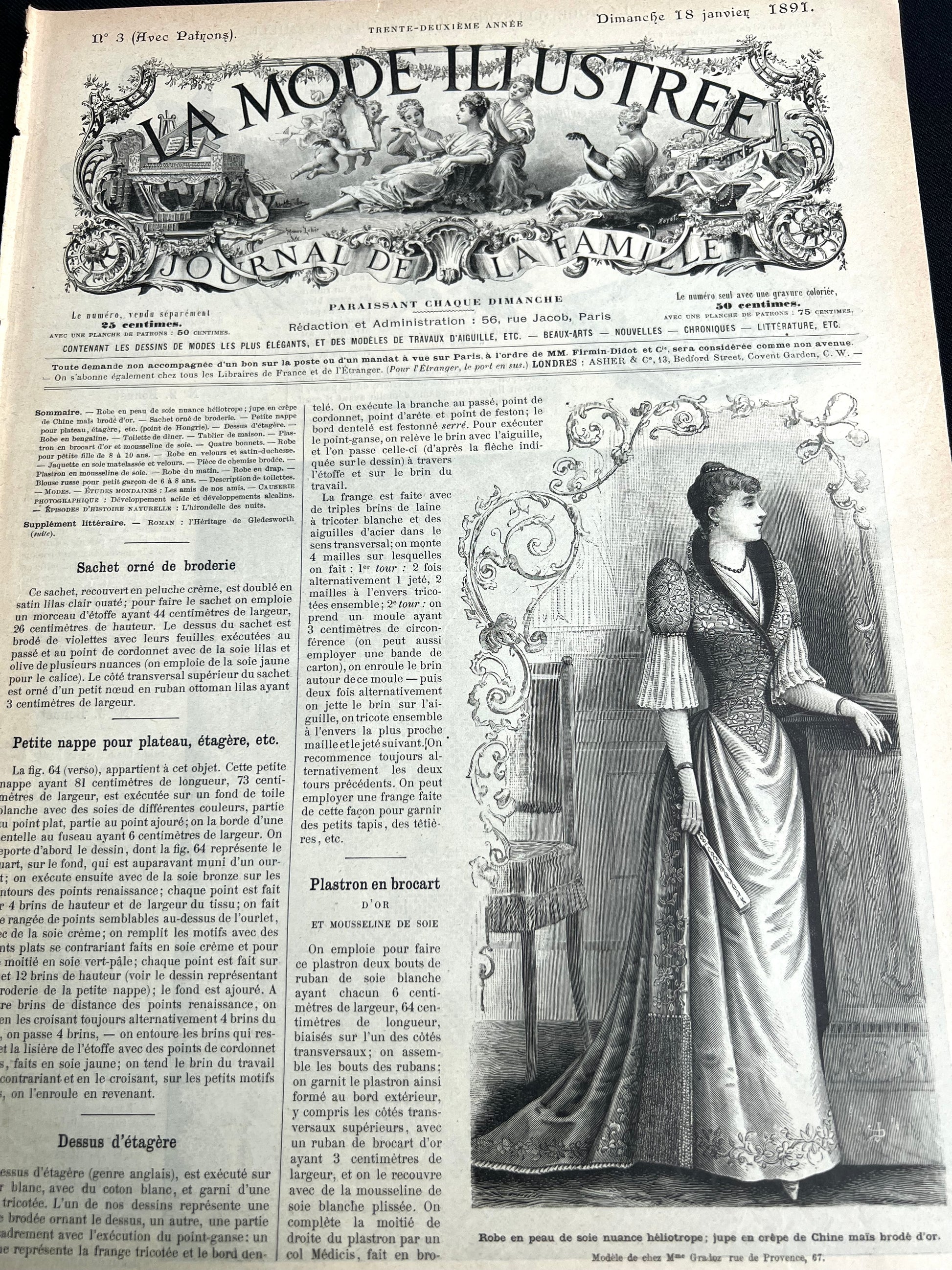 This 18th January 1891 issue of the French Fashion paper La Mode Illustree contains 8 big - 26cm x 36cm - black and white pages and is full of wonderful illustrations of the most elegant dresses of the season. And handicraft projects . And a marvellous spotty dress for a young girl to wear ! (see 5th photo)