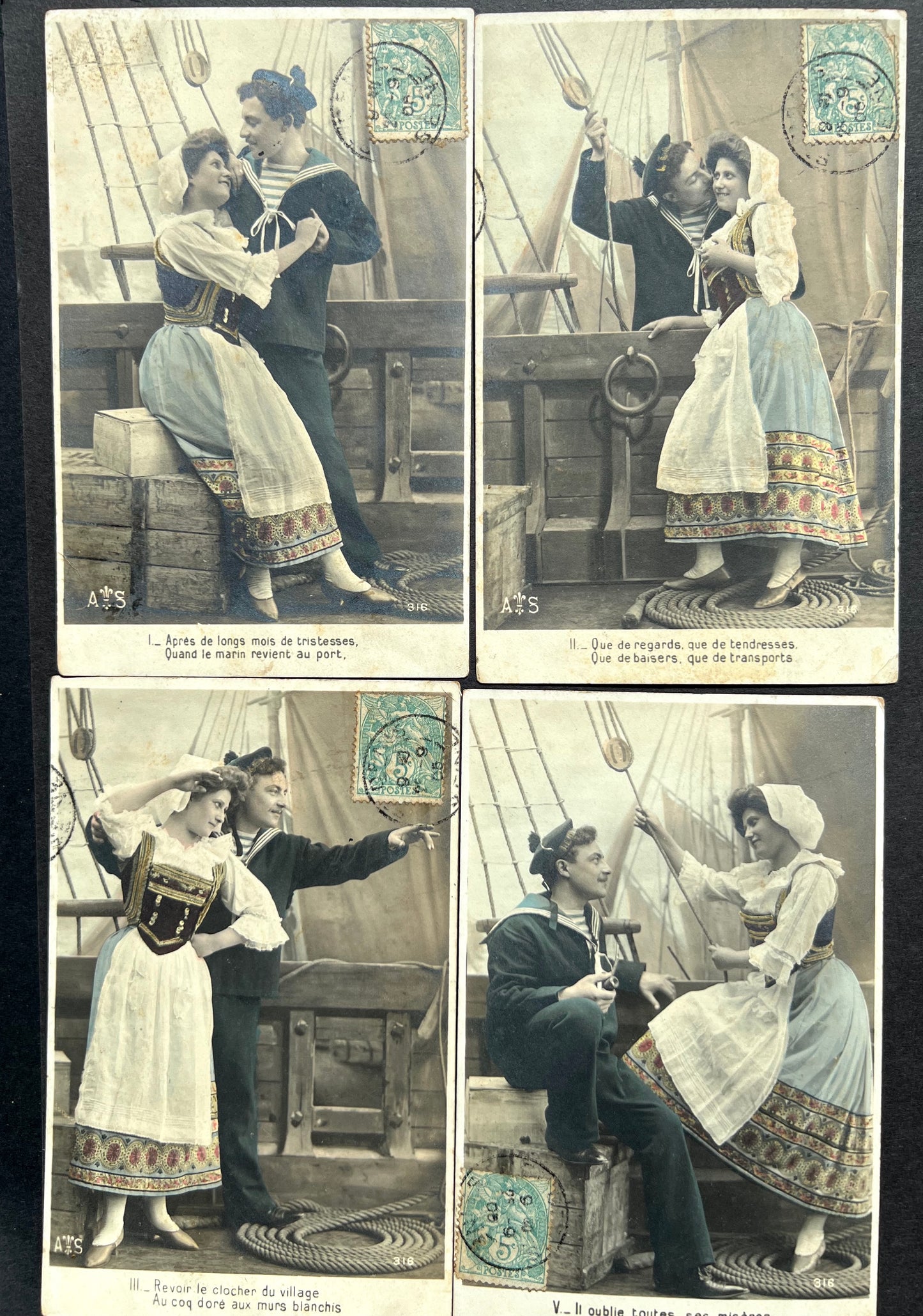 Bit of Role Play in this Set of 4 Romantic French Postcards from 1905