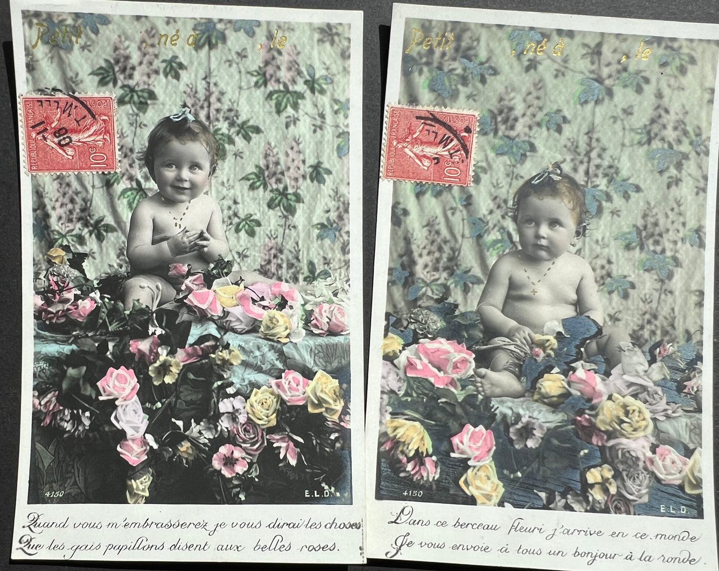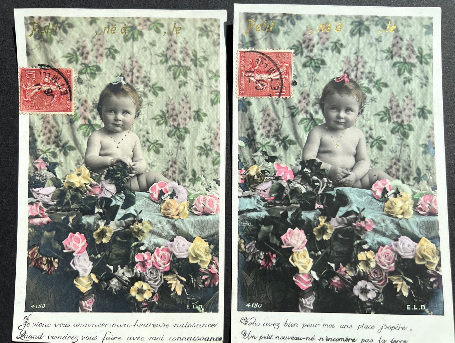 Set of 5 French Postcards from 1906 of a Jolly Baby