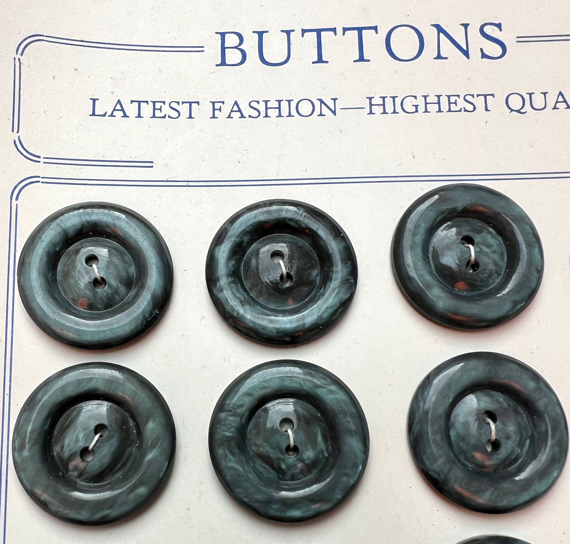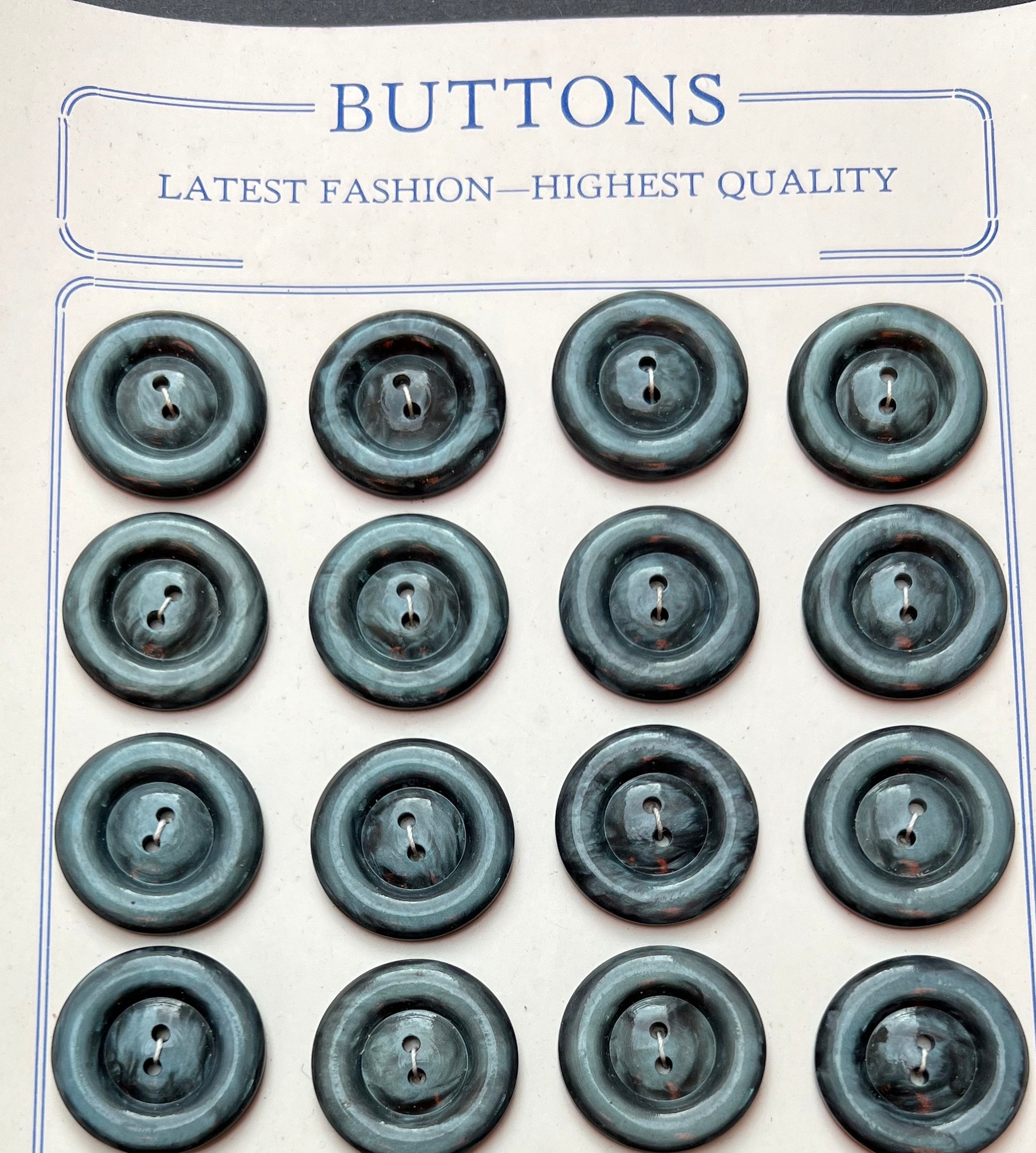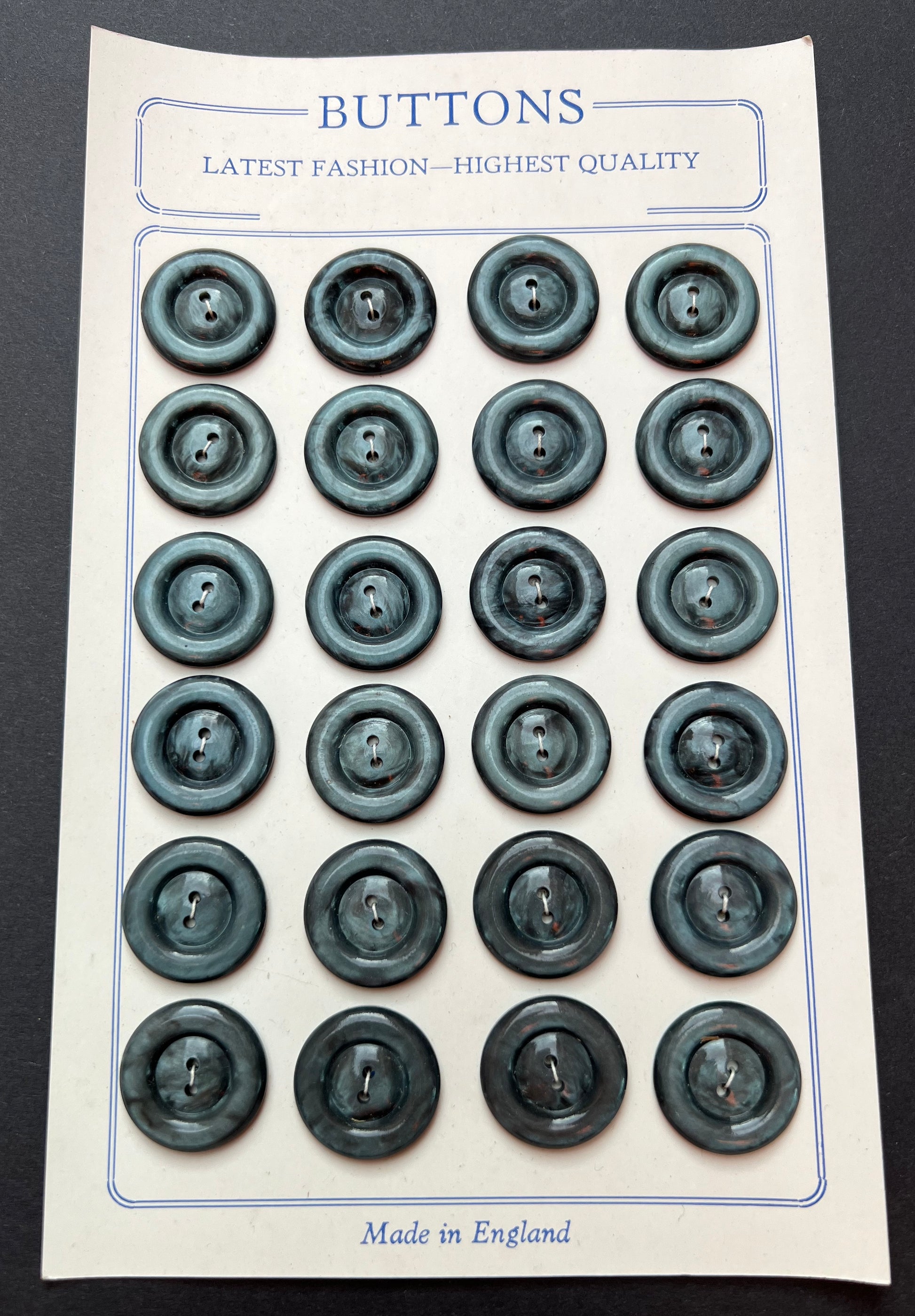 Interesting 1940s Metallic Blue Grey 2cm -Buttons Sheet of 24 -Made in England