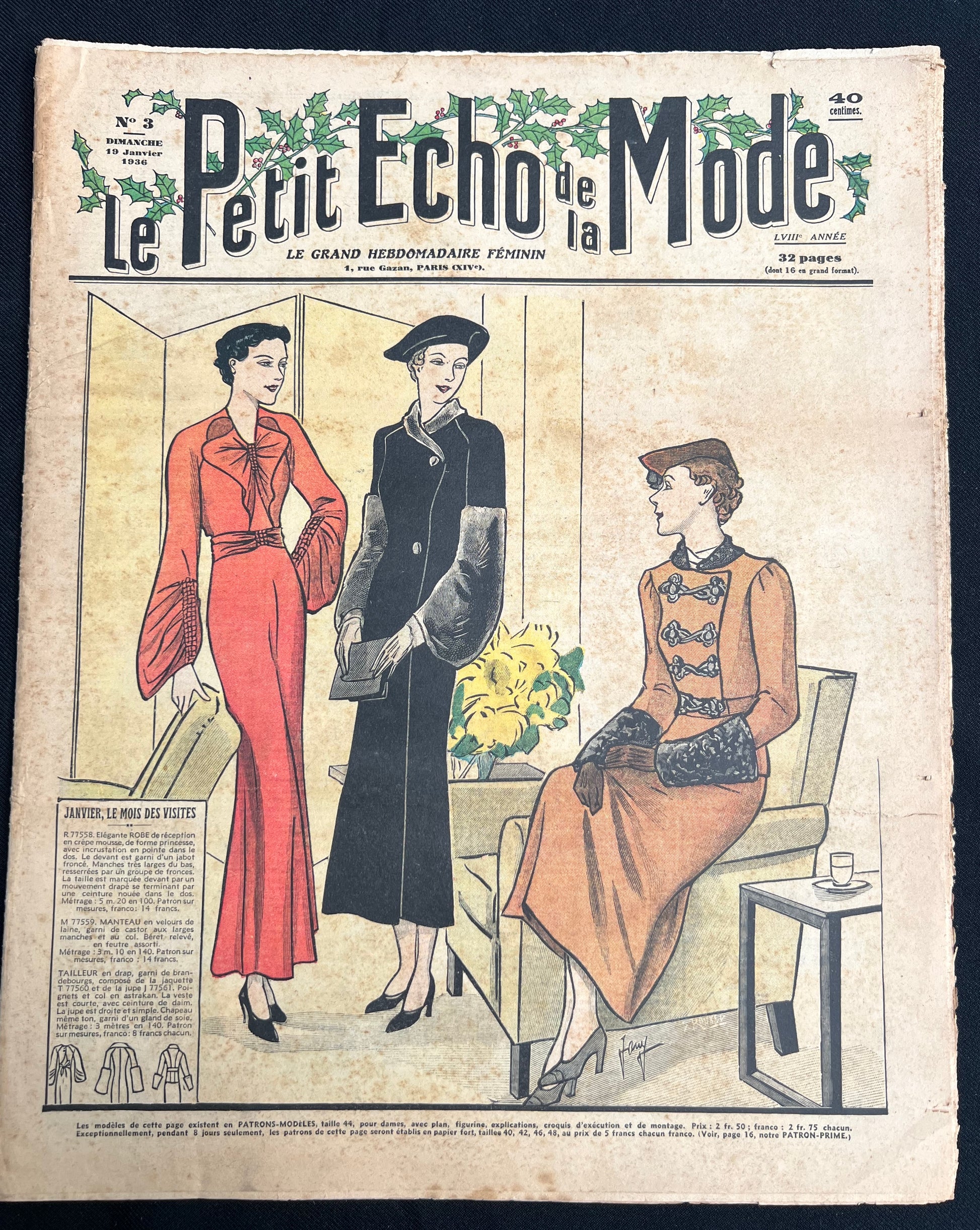 A selection of interesting 1930s millinery in this 19th January 1936 issue of the French Women's Paper Le Petit Echo de la Mode