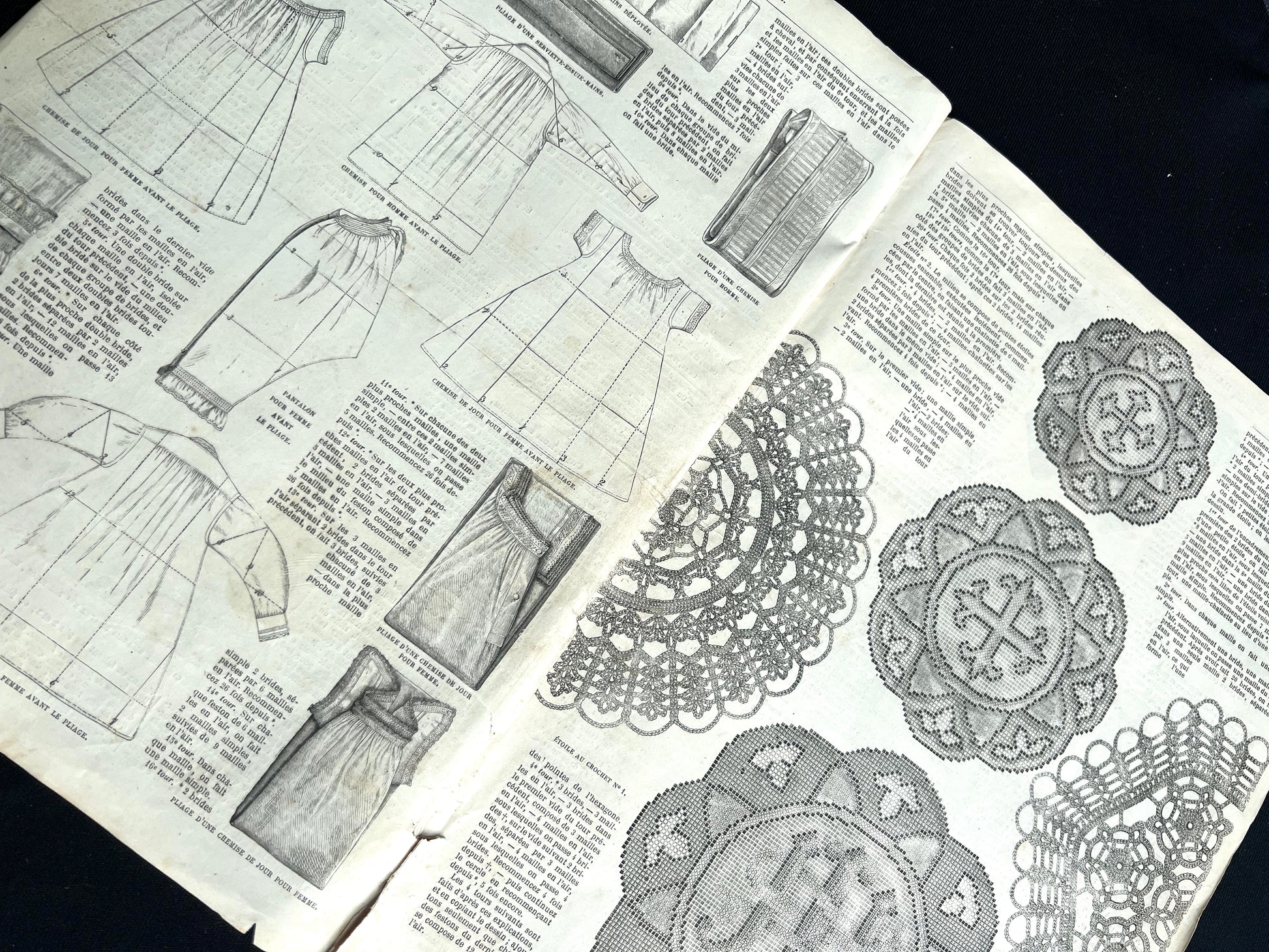 This 13th January 1867 issue of the French Fashion paper La Mode Illustree contains 8 big - 26cm x 36cm - black and white pages and is in good condition, just has a rough spine as these would have been sewn, at one point, into a big hardback folder containing a years worth of papers.