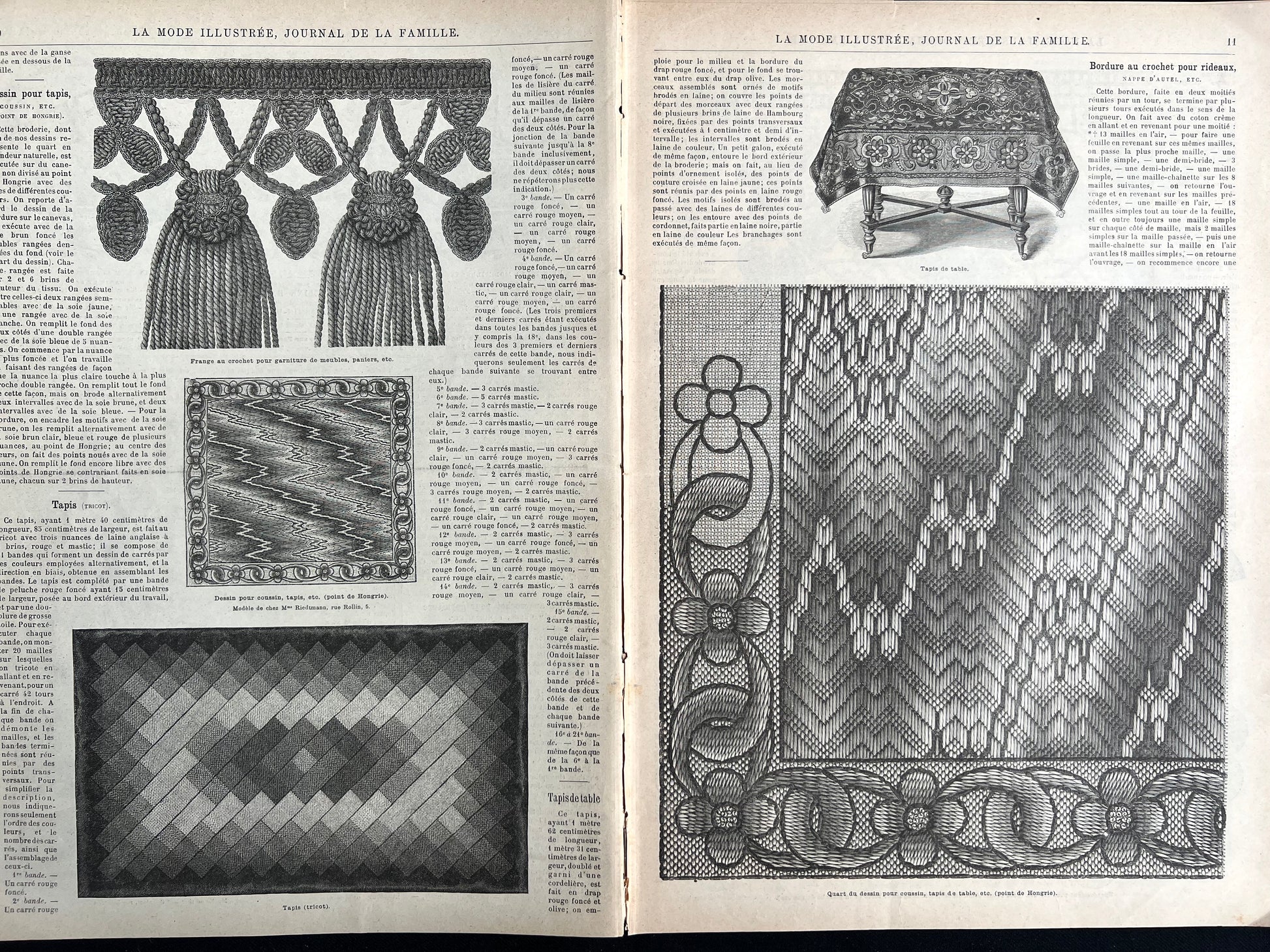 This 11th January 1891 issue of the French Fashion paper La Mode Illustree contains 8 big - 26cm x 36cm - black and white pages including a page of traditional regional outfits. And complex handicraft projects !