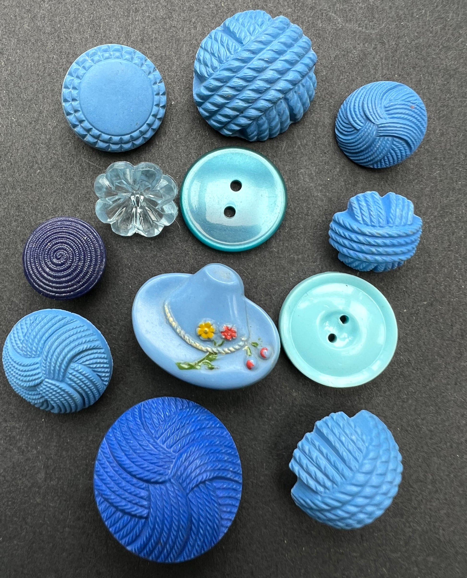 100 vintage buttons, an assortment of large, small, glass, bakelite and catalin, lucite, metal, novelty, pretty, unusual.