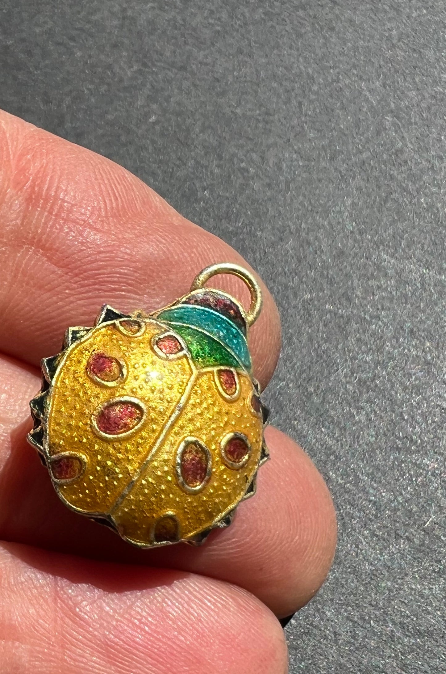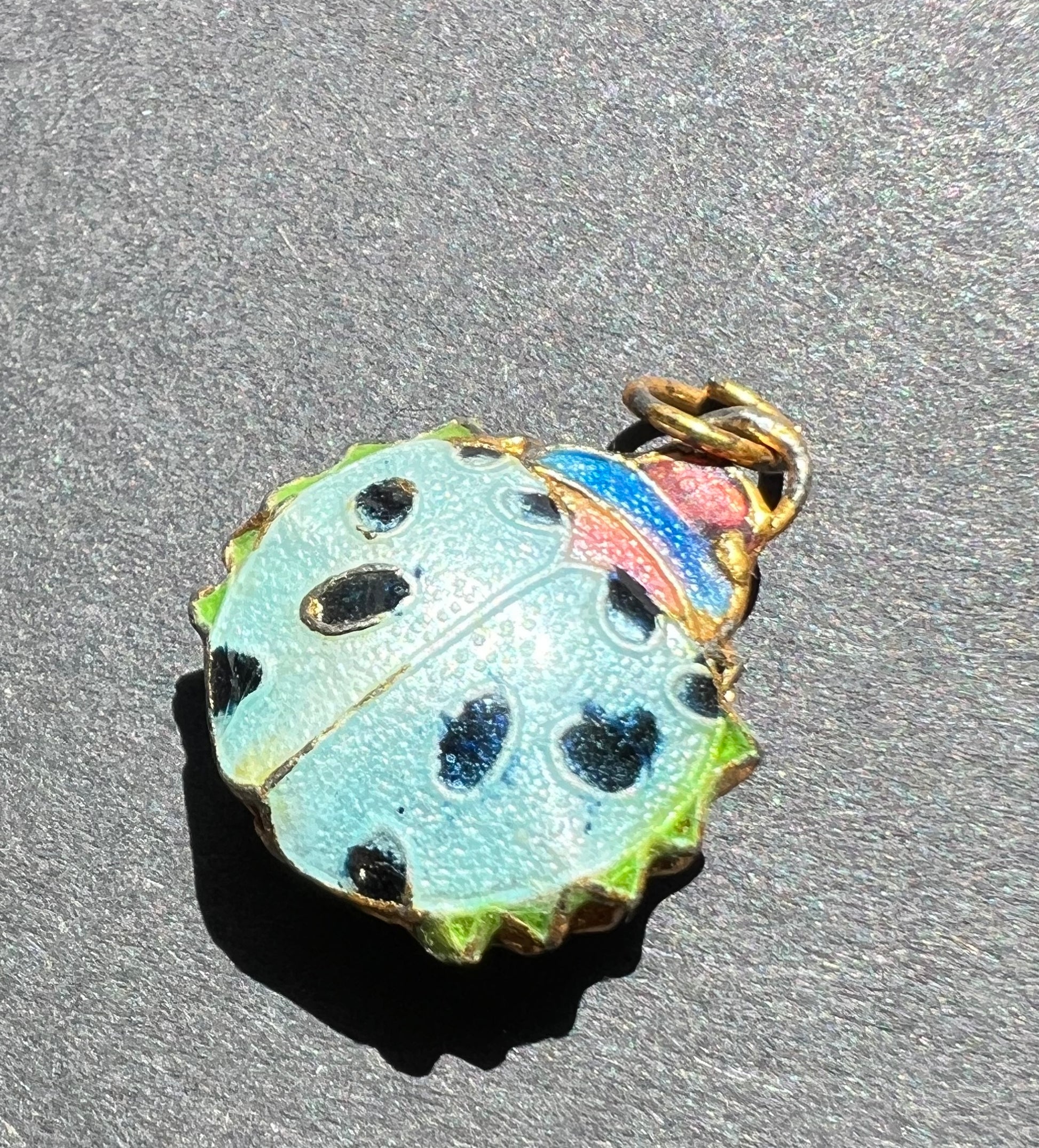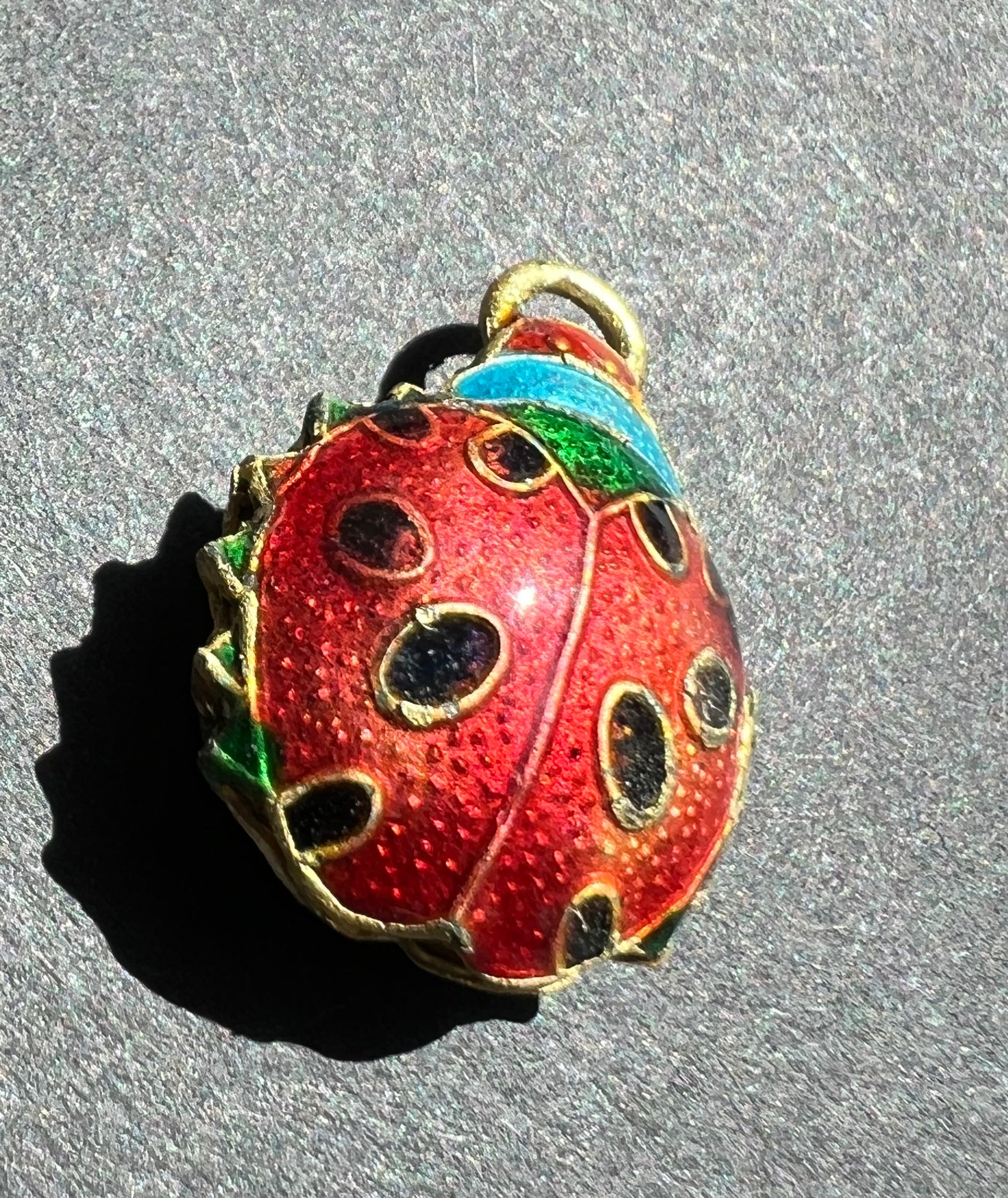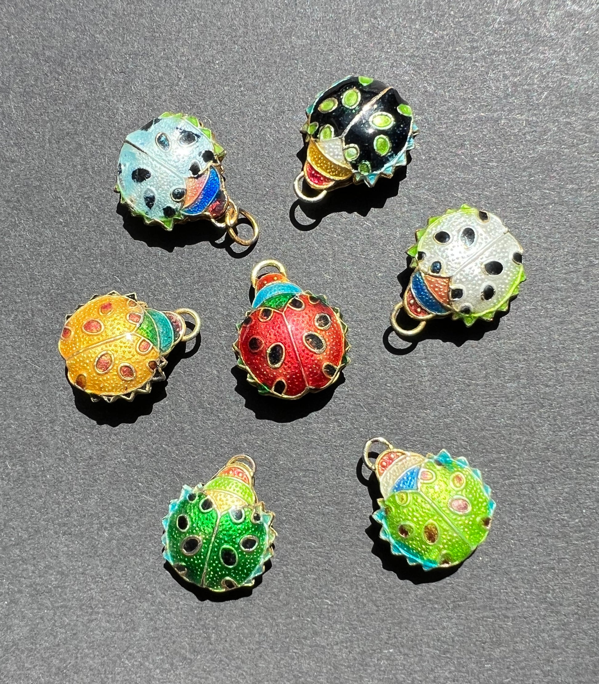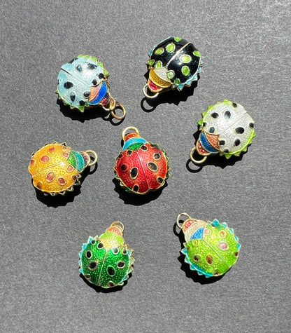 Vibrant cloisonne enamel Ladybird charms / pendants.