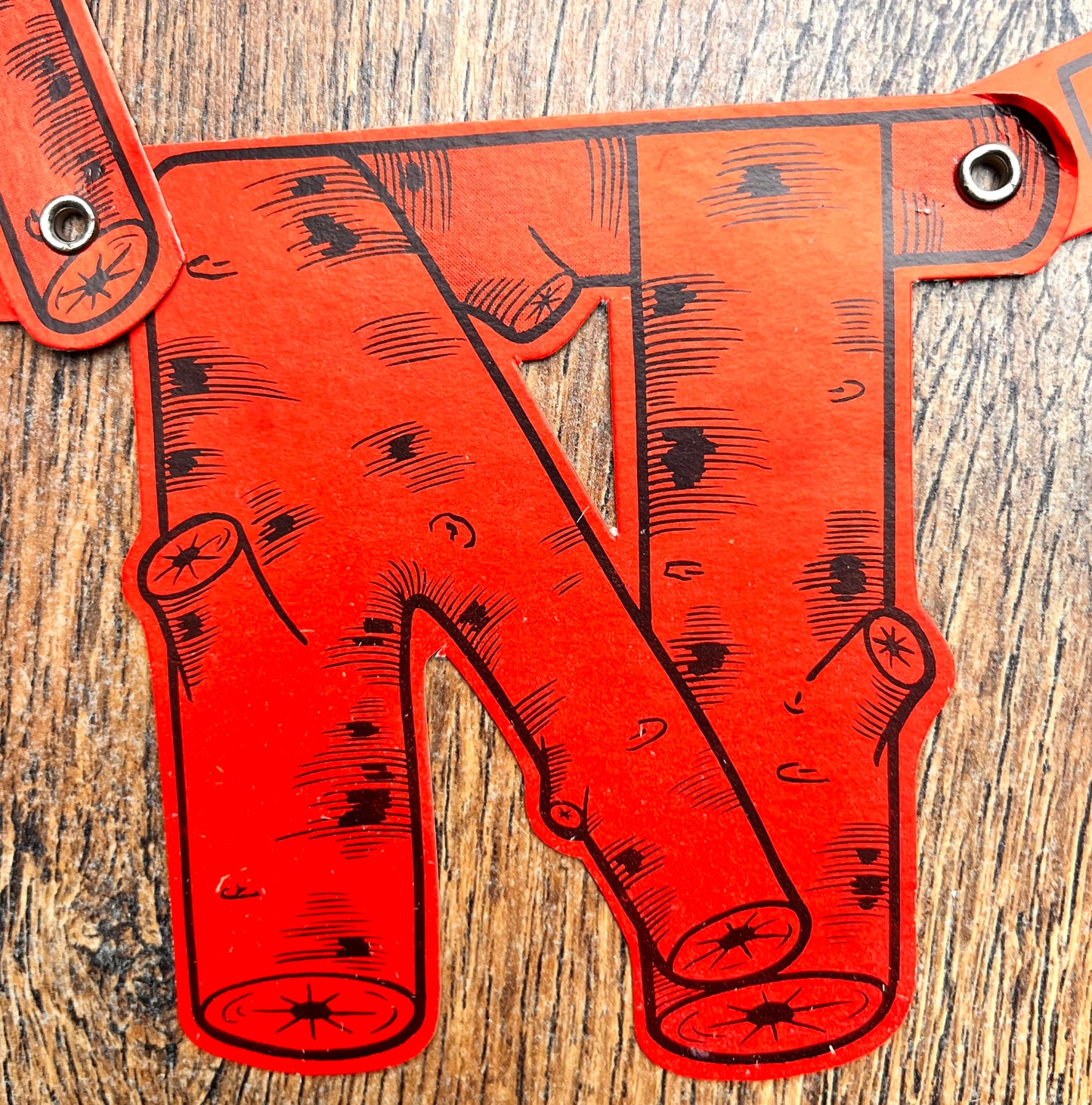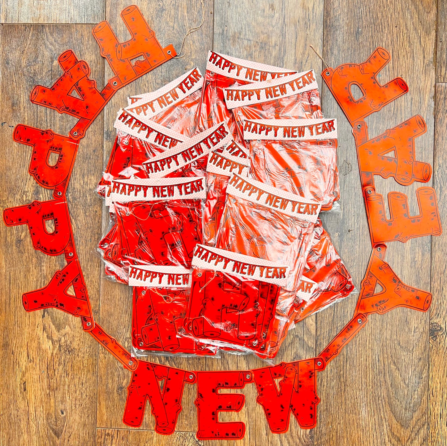 5' Long LOG shaped HAPPY NEW YEAR Banner 1950s Made in Japan