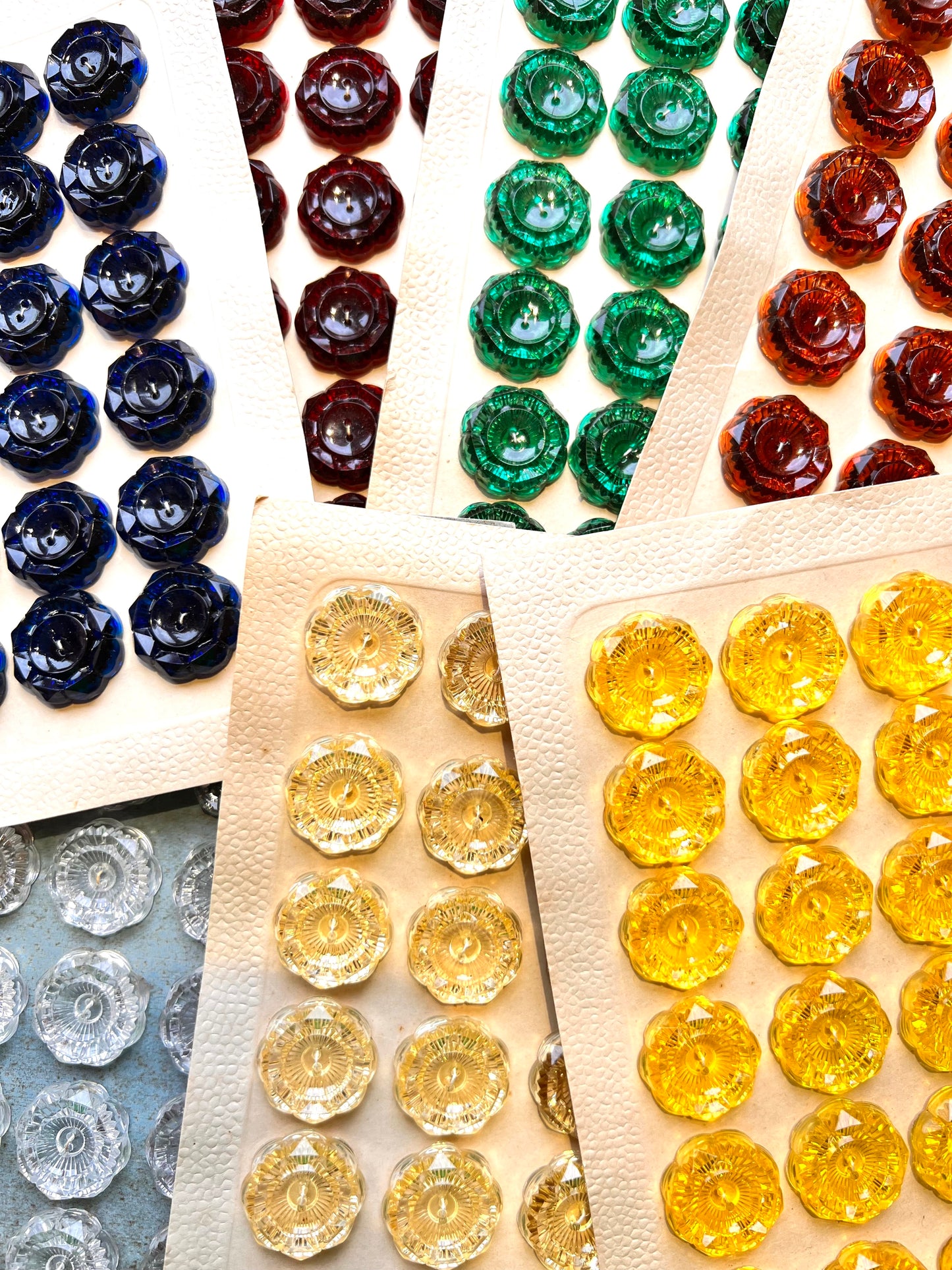 Vintage Sparkling Jewel Buttons- 24 on Card - 2cm - Choice of 7 colours