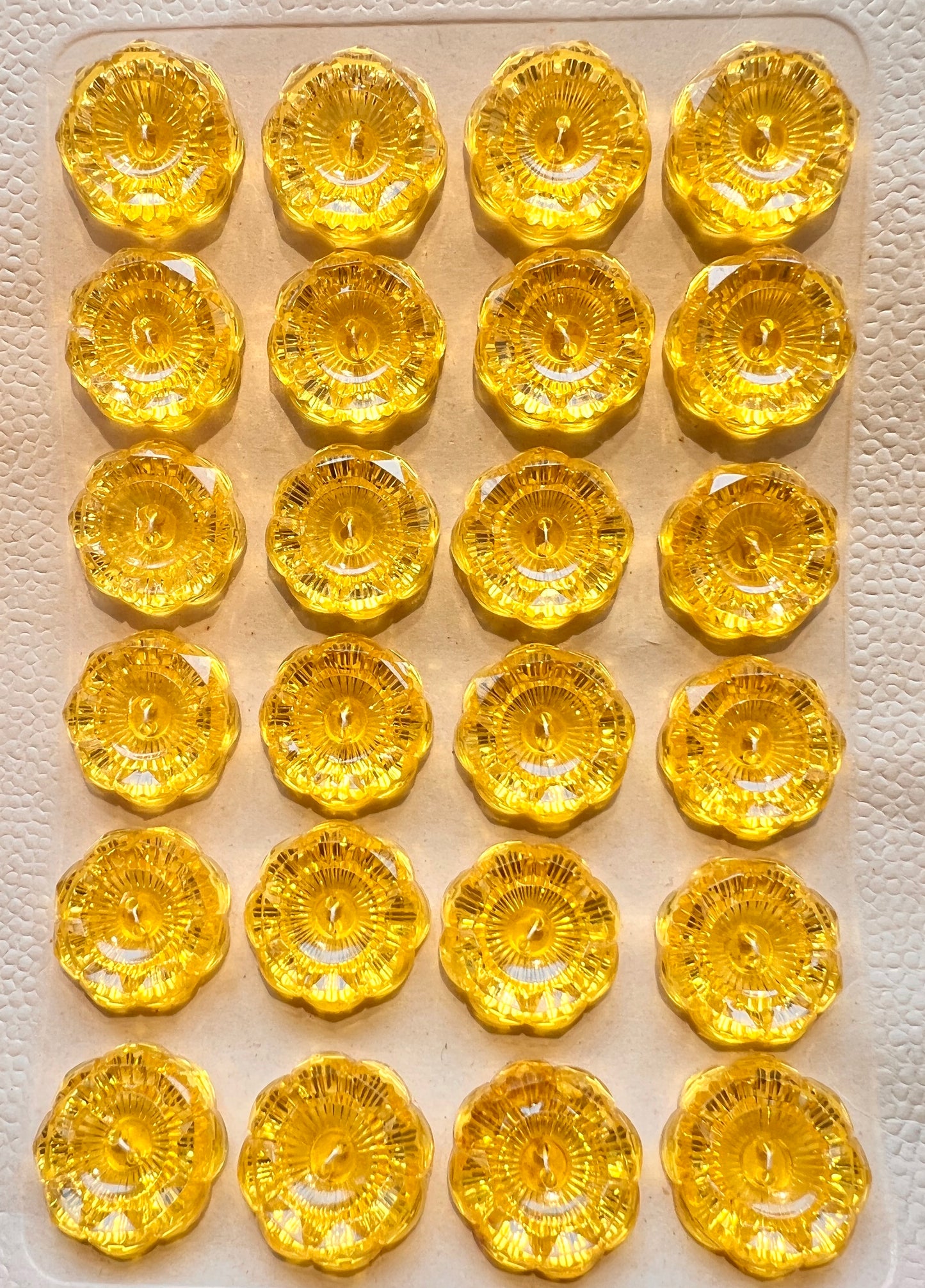 This price is for one sheet of 24 buttons, all the same colour, a few sheets have lost 1 button so only 23. I will sell the full sheets first and then the sheets of 23.