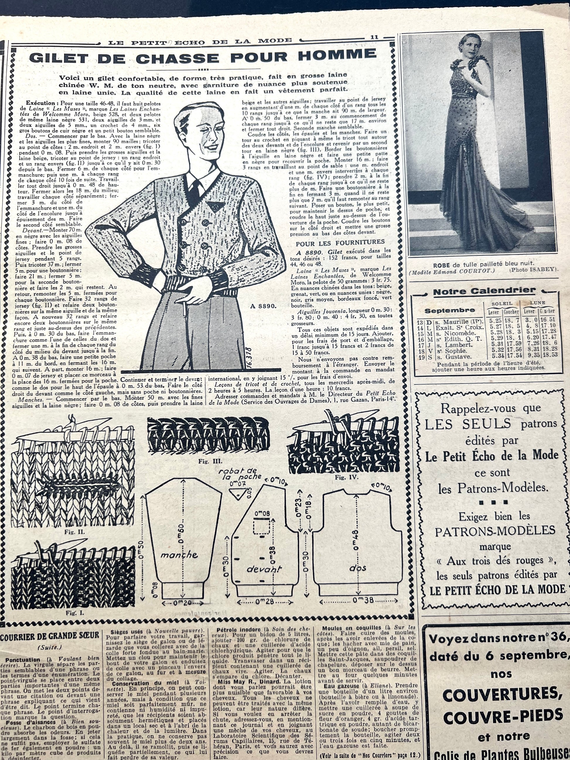 "A good haircut makes everything better" is what I think it says on the front cover of this 13th September 1936 issue of the French Fashion Paper Le Petit Echo de la Mode