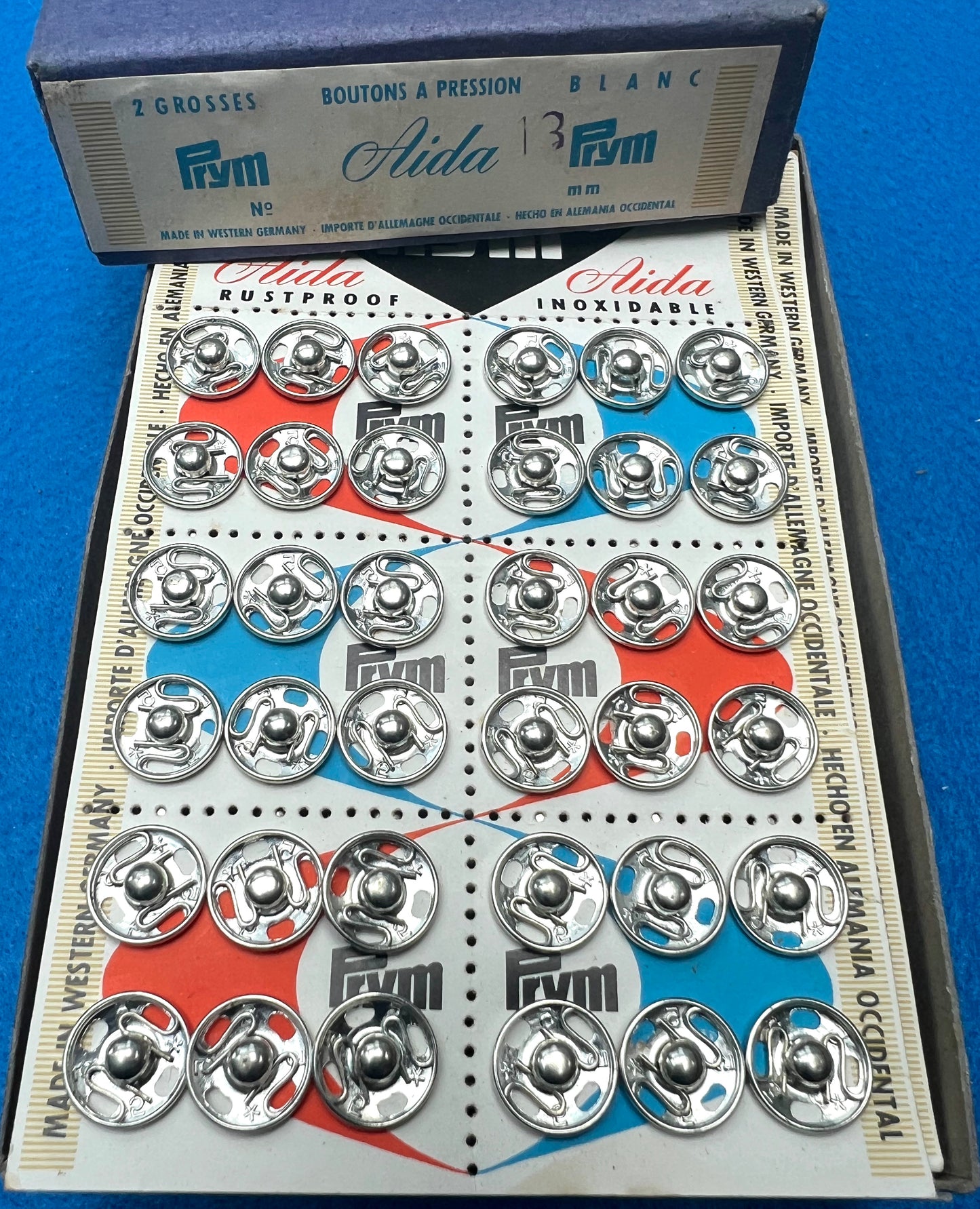 An Unused box of 8 sheets of 1.2cm vintage German press-studs - 36 on a sheet.